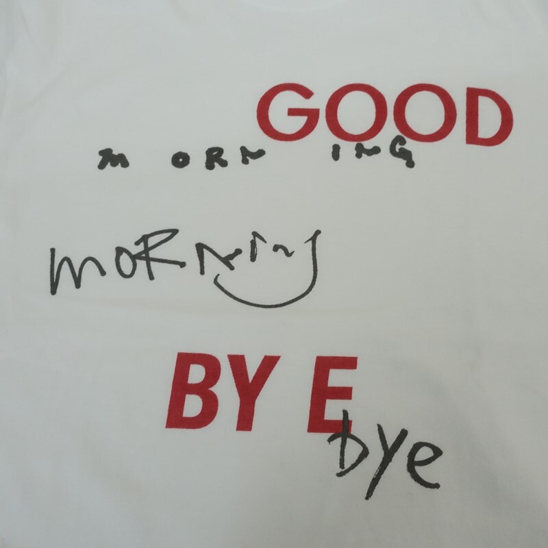 | 2025年秋冬コレクション JOURNAL STANDARD LUXEのGood Print Tです。カラーはホワイトで、前身頃にくすみレッド・ダークグレーのプリントが施された天竺ニット地です。プルオーバータイプで着脱でき、襟ぐりはリブ仕様です。 |