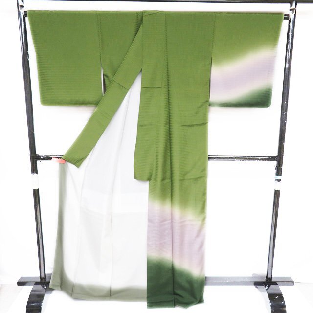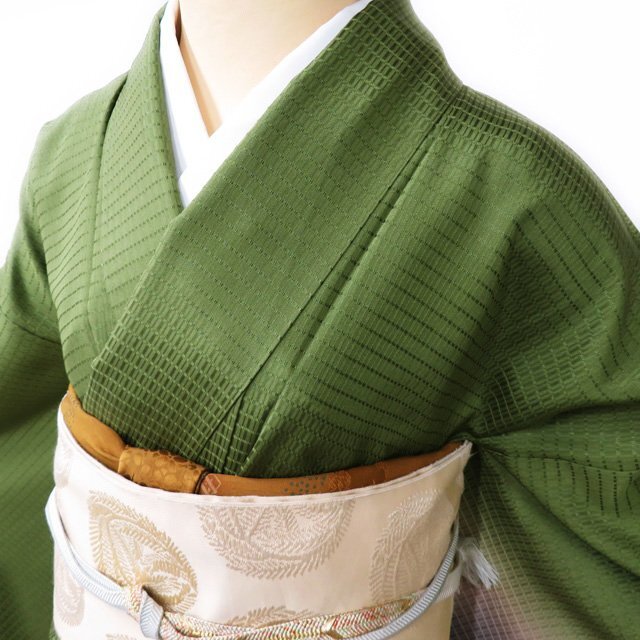 丈167cm(+8) 裄70cm(+1) 袖丈48cm(+2) 前幅24cm 後幅29.5cm ※サイズのお直し、承ります。 (身丈のみ、身幅のみのお直しは承っておりません) ※身丈は肩から測っております。 ※()内はおおよそのお直しいただける長さです。胴裏の長さ等によって()内の長さ通りお直しできない場合があります。 単位:cm 素材 正絹 商品ランク B ●着用時期 10月~5月(+-2週間) ●着用シーン 披露宴、パーティー、お出掛け、式典など ●お色 草色 白鼠色 使用感の少ない、美しいお品物です。 写真に写っている着物のみの販売で帯等の付属品はついておりません。 一部商品は実店舗・他サイトでも並行して販売しておりますので売り切れの際はご了承ください。 その他多数販売中 gu- | ||||||