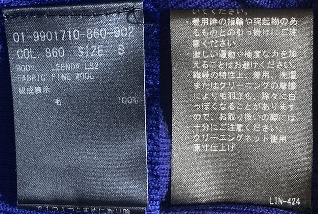 寸法は平置きで:リブ編みですので、着用後の寸法よりも細めです。
