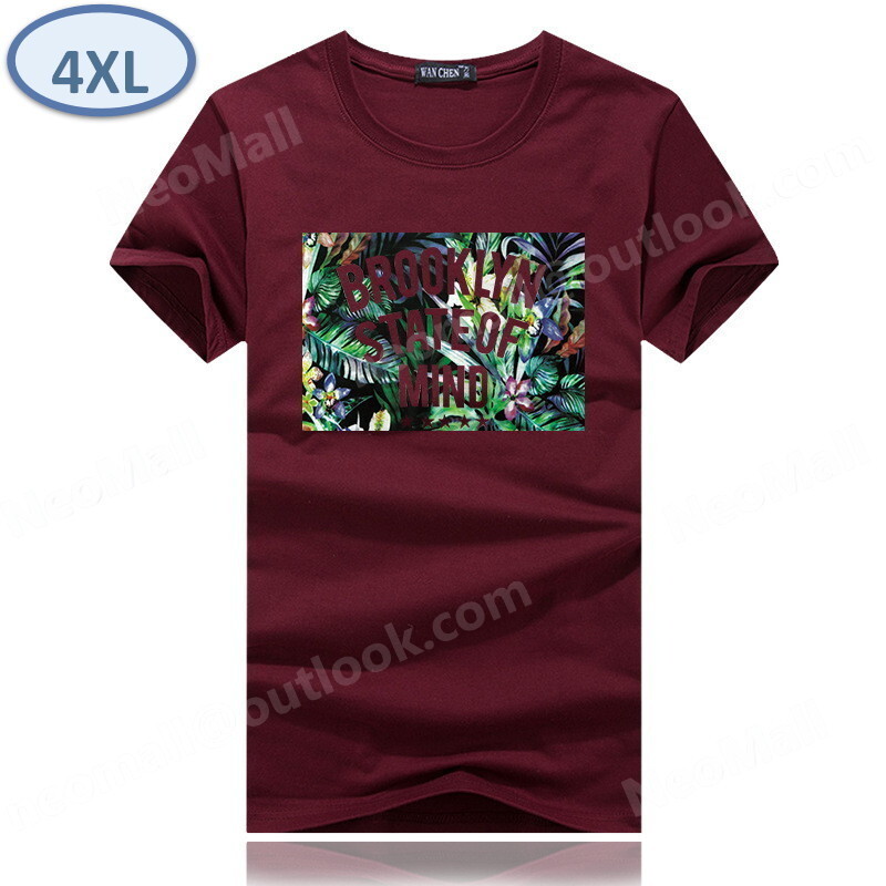 夏にピッタリ ☆ 丸首 半袖 Tシャツ【074】 ワインレッド 4XLサイズ トップス シャツ シンプル イラスト プリント 春夏