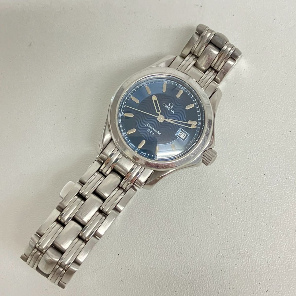取り扱っている商品は未使用・未開封も含め、全て一度は人の手に渡った一点ものの中古・ジャンク扱いでの商品です。 当方素人ですので肉眼で確認できる簡易的な検品、採寸、および簡易梱包となります。 ※稼働の記載につきましては秒針等の確認のみとなり、全体の動作を保証するものではございません。 また、出品時の中古品の動作状況となりますので、予めご了承の上でご入札ください。 不動の表記につきましてはクォーツ式のムーブメントの場合、動作未確認の状態となります。 電池交換後、不具合があった場合でも返金、返品の対象とはなりませんので、予めご了承くださいますようお願い致します。 細かな日差、オーバーホール状況、社外パーツの使用に関しては保証しかねますので、ご理解いただけた上でのご入札をお願い致します。 上記を踏まえた上で中古品、ジャンク商品として出品させていただいておりますので、全てご理解いただけた上でのご入札をお願いいたします ------------------------------------------------------------------------- 【メーカー】 OMEGA 【モデル名】 SEAMASTER 【型番】 2571.81 【シリアル】 55223722 【サイズ】 直径約3cm 腕回り約15cm 【付属品】 画像参照 【稼働状態】 稼働 【その他状態】 リューズ動作 時間:OK 日付:OK 曜日:- ベルト金具緩い ------------------------------------------------------------------------- 画像にあるものが全てです。 他詳細は画像にてご判断ください。 ※目立つ傷や汚れを中心に写真を撮っておりますが、画像に写りきっていない傷等がある場合もございます。予めご了承ください。 ※商品を多数出品している関係で、稀に商品説明や画像に誤りがある場合がございます。予めご了承ください。 こちらのページをご覧いただく際は、商品説明文と掲載している画像の全てを確認いただいた上でご入札ください。 | |||||||