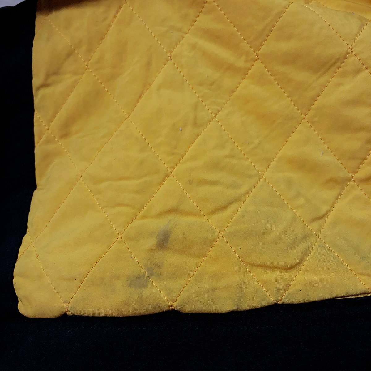 中古品です。使用感があります。フロントポケットや裾や両袖先などボディの所々に擦れや薄汚れ、裾辺りに小さな破れ、裏地下部全体に汚れがあります。