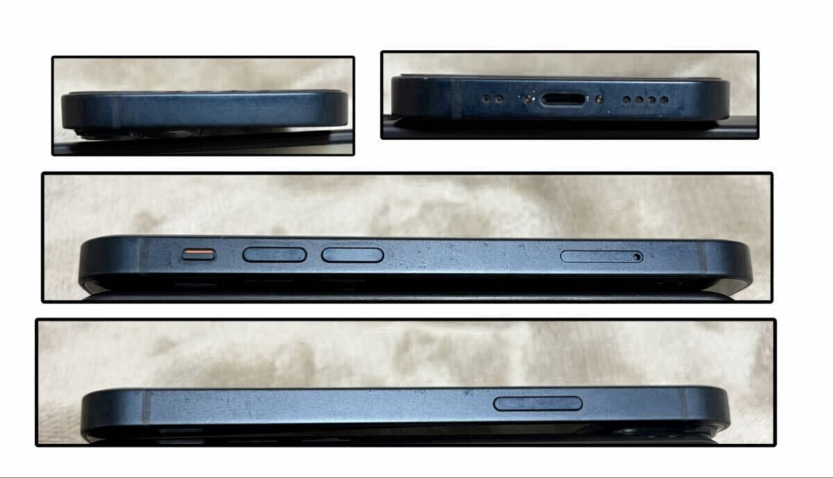 一枚の画像に上面、下面、側面の写真を同時に載せてますが出品は1つのiPhoneです。