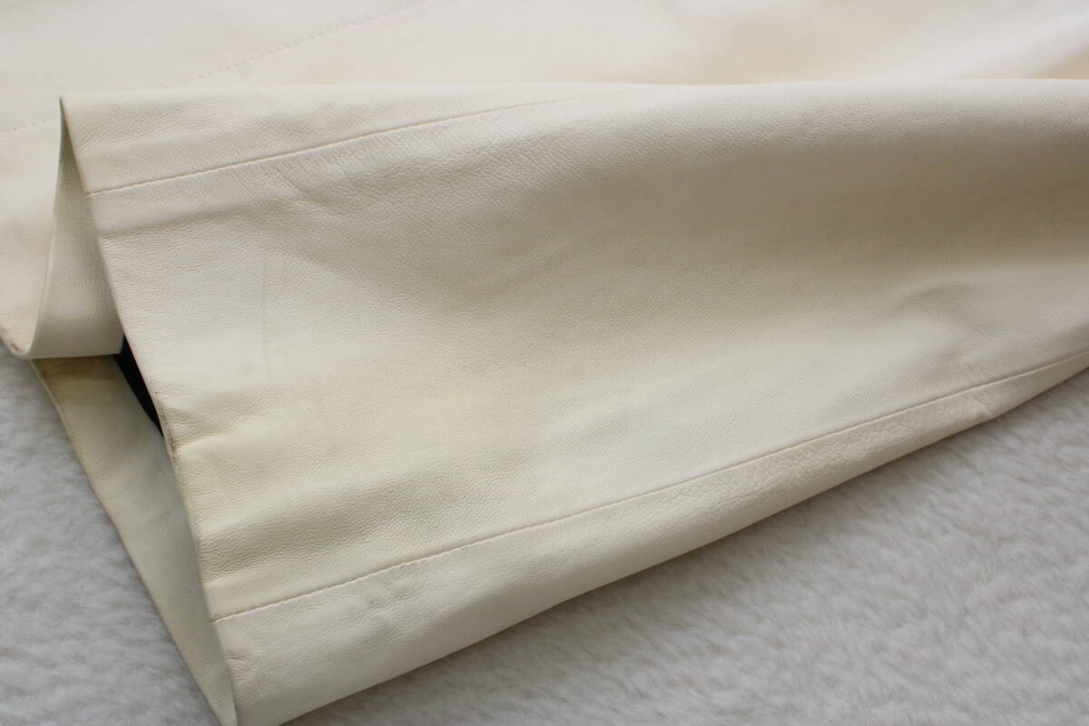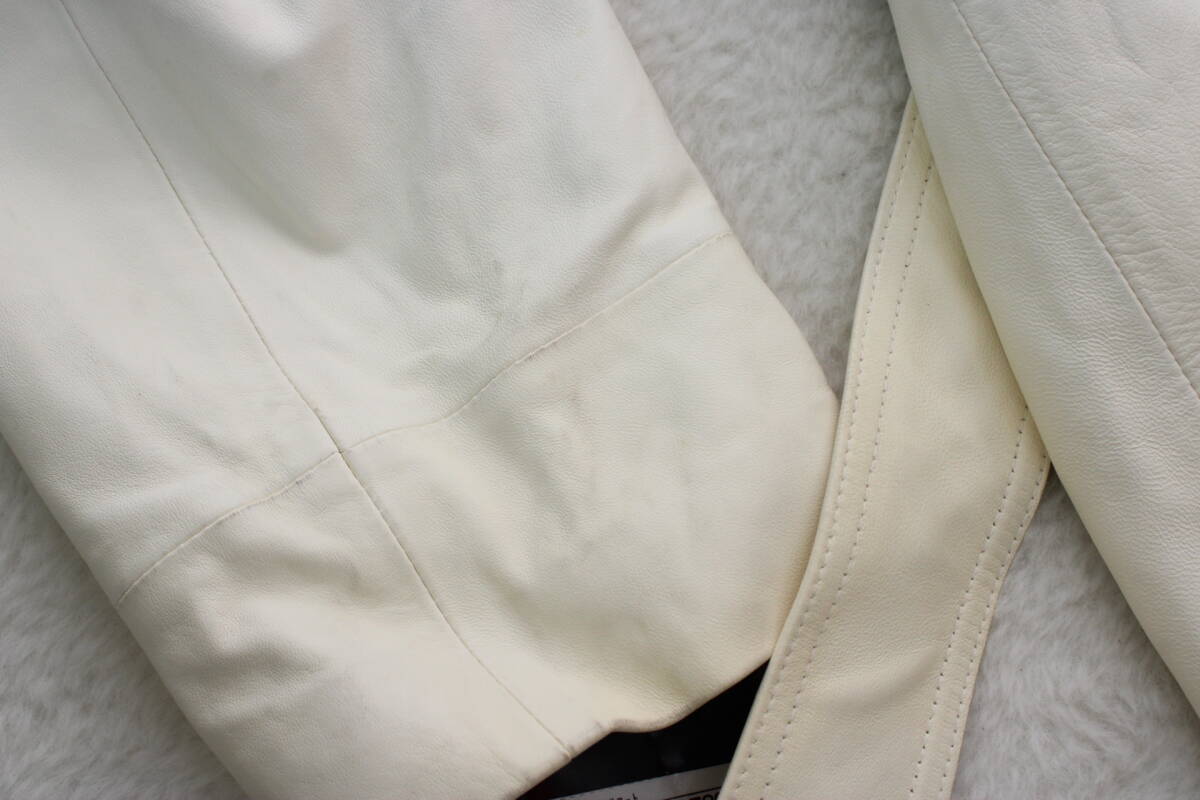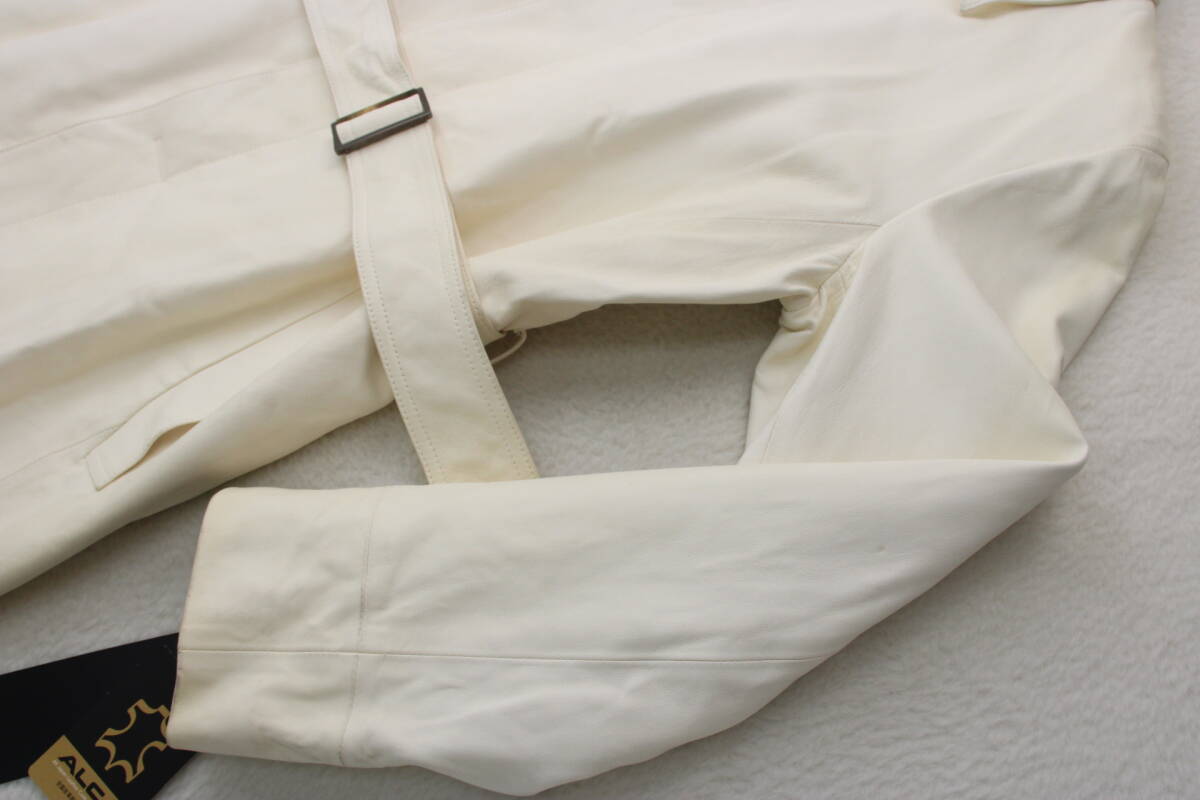 6677 新品タグ付き メンズ 高級羊革レザーロングコート ホワイトLサイズ