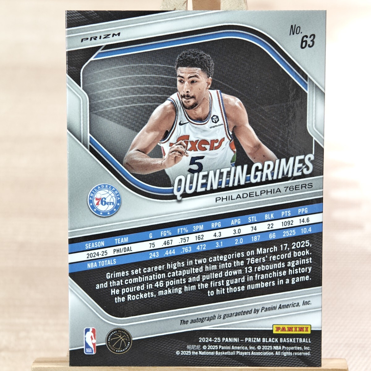 クエンティン・グライムズ 2024-25 Panini Prizm Black Silver Prizm Quentin Grimes Auto 直筆サインカード フィラデルフィア・76ers