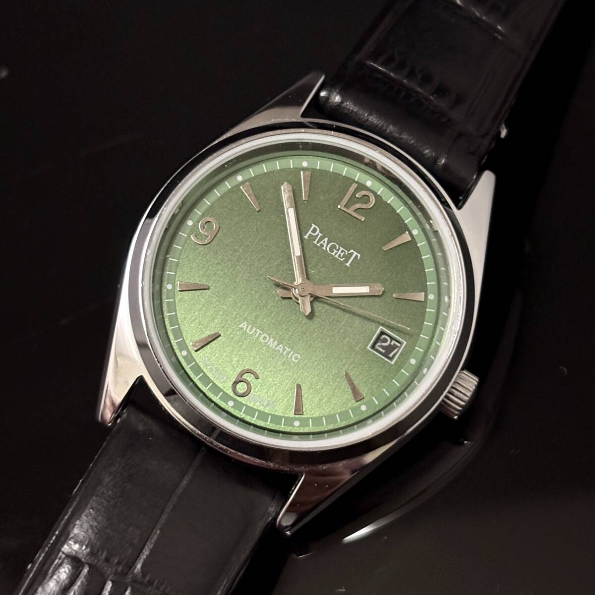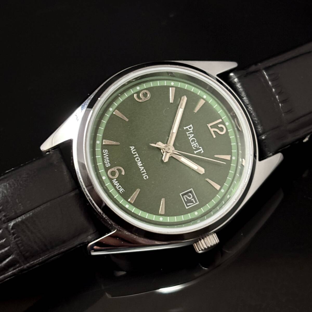 | 商品説明 | ピアジェのアンティークウォッチになります。 ムーブメントは自動巻きです。グリーンカラーをベースに、高級感を感じさせる艶感が美しいダイアルで雰囲気抜群の時計です。ベルトは新品の本革型押しクロコレザーです。メンズの物ですがサイズ感としてユニセックスでもご愛用頂けるので、カップルやご夫婦でシェアしてお使いいただくのも良いかと思います。同じピアジェでも他の方と違った物を求める方にも是非お勧めです。 |