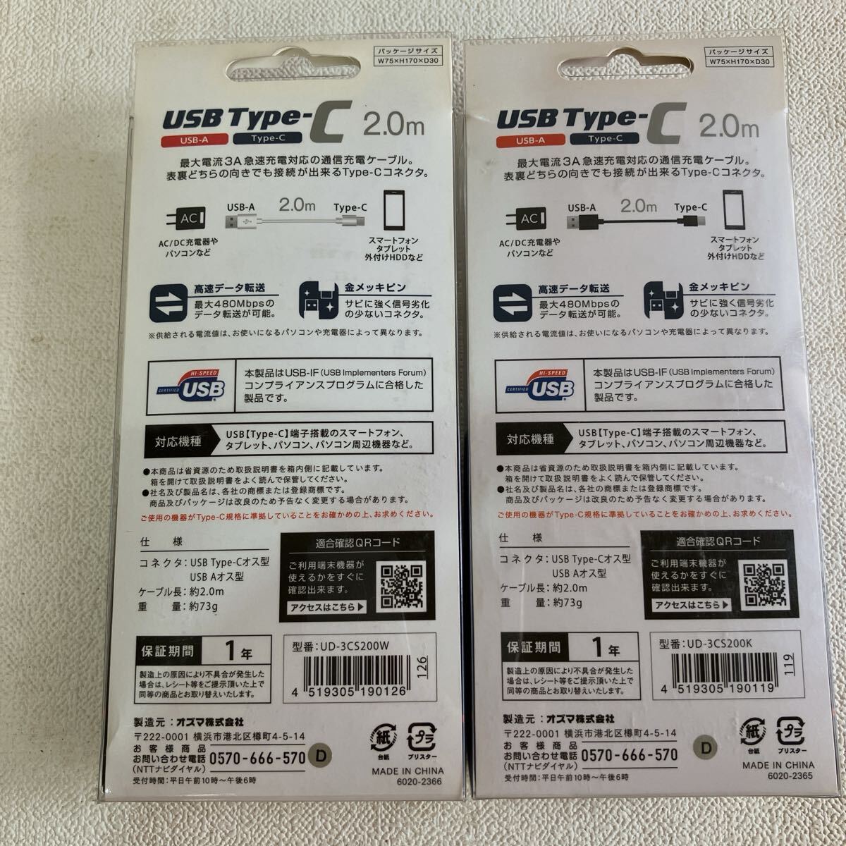 オズマ USB Type-C 急速充電対応3A 2.0m…2点