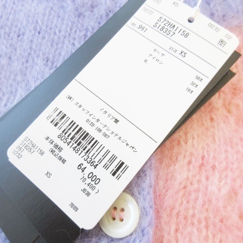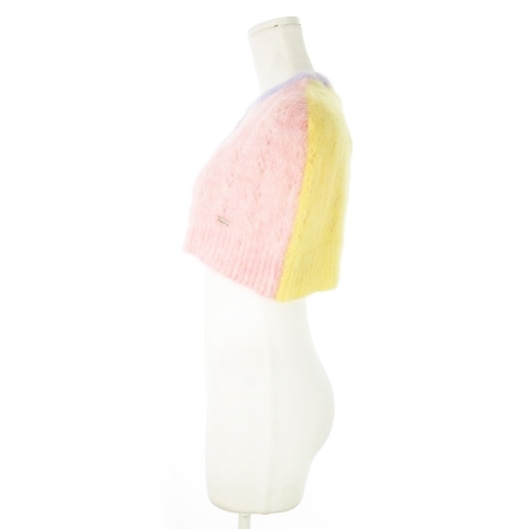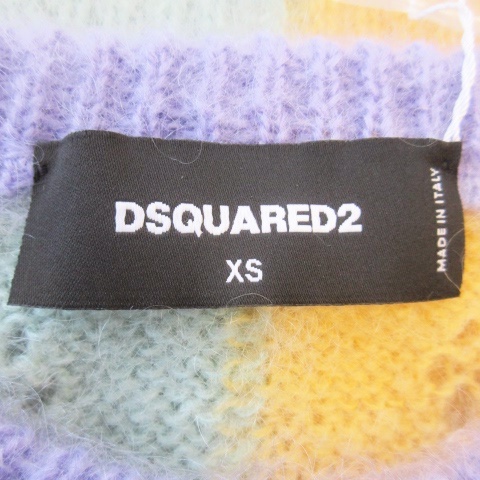 未使用品 ディースクエアード DSQUARED2 23AW モヘヤミニケープ クロップドカーディガン マント 透かし編み 配色 ロゴプレート XS 紫