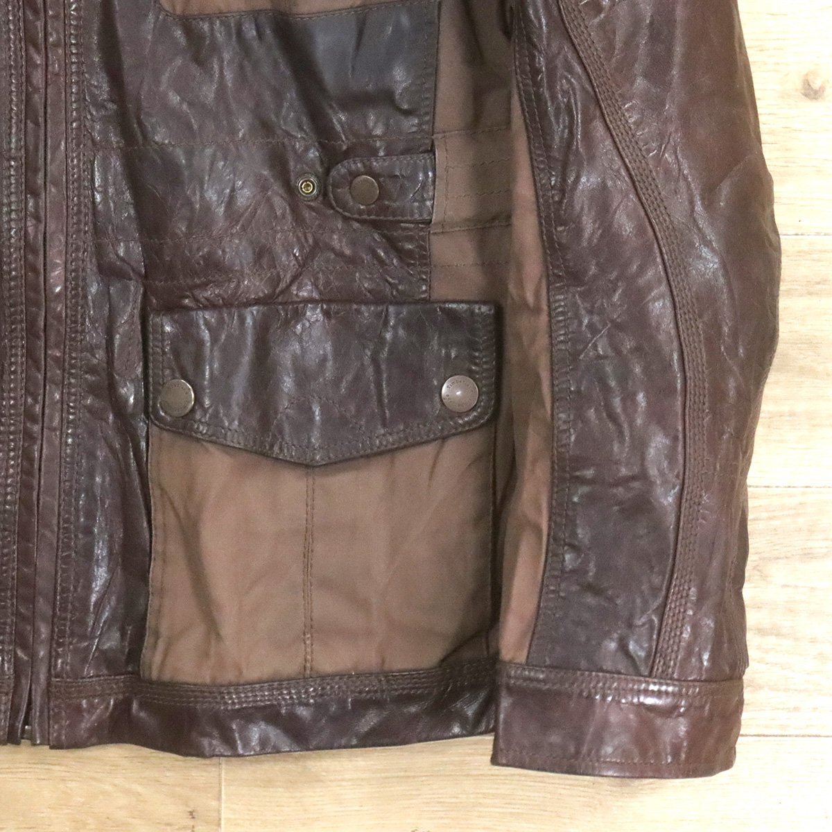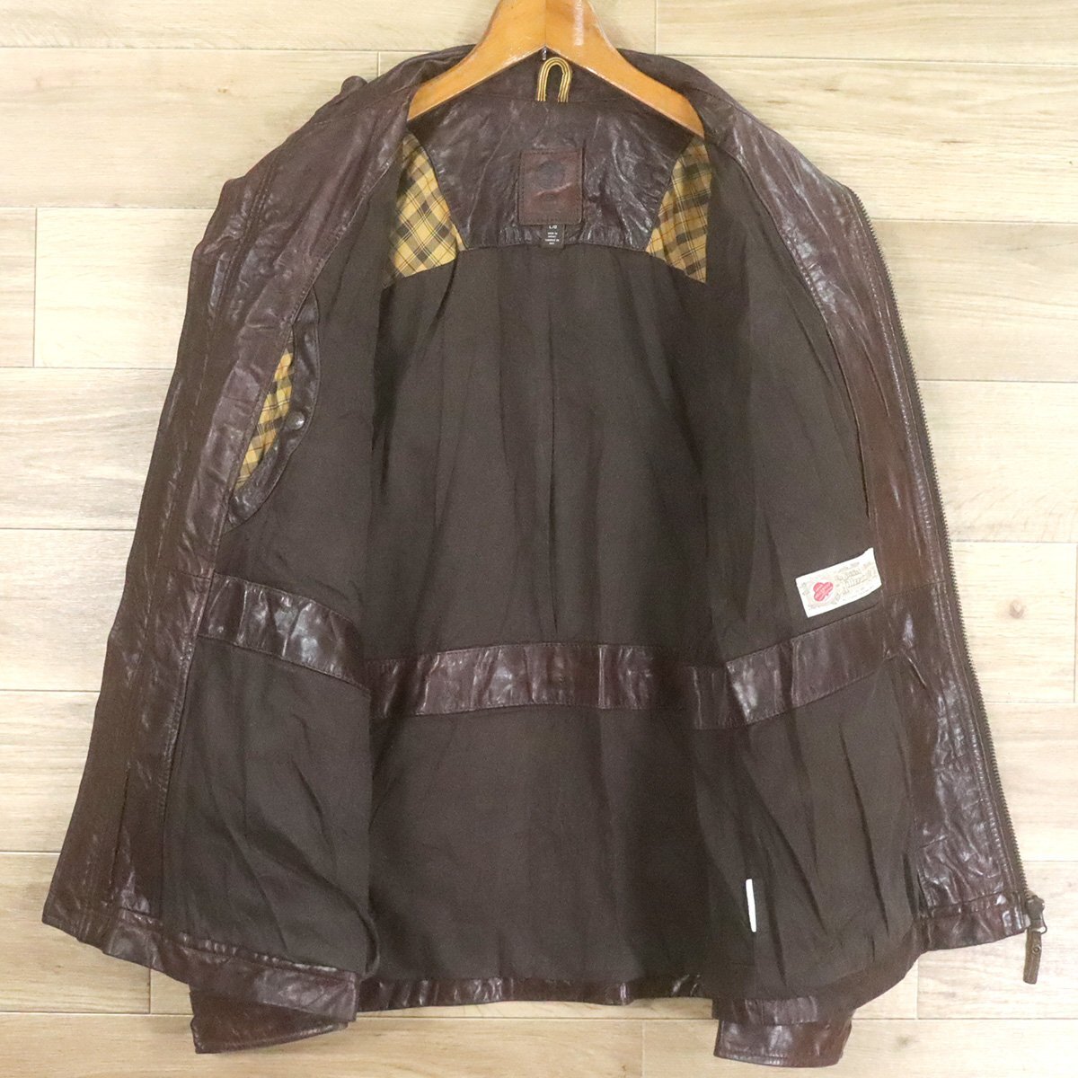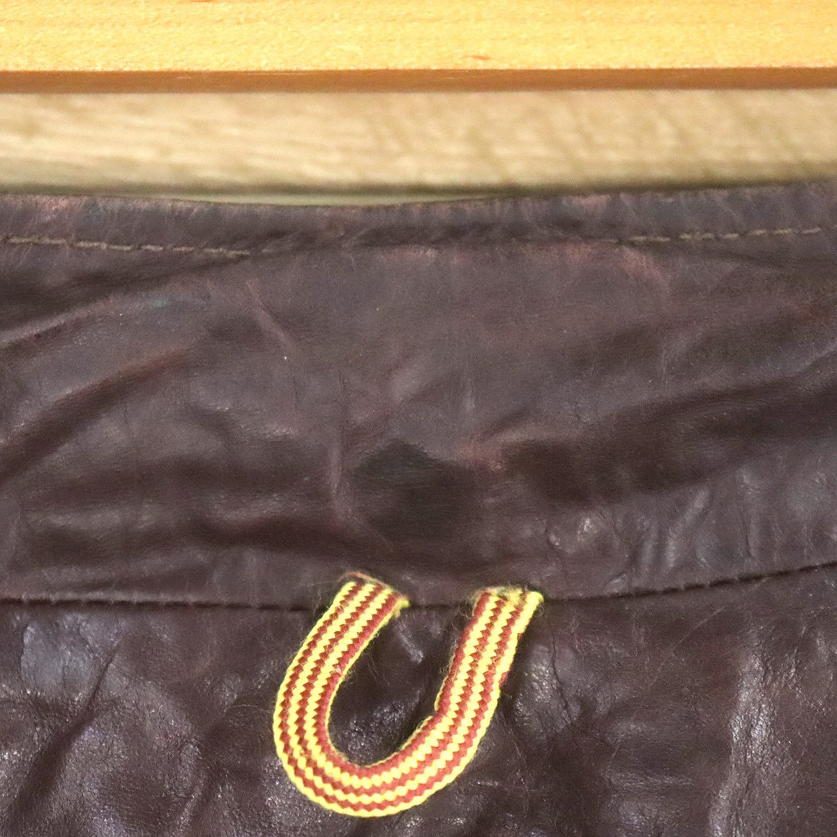中古品です。使用感があります。フロントや袖などに薄汚れ、全体に経年によるレザー特有の擦れとアタリがあります。