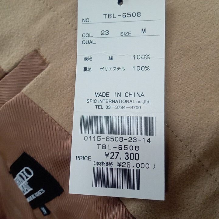 未使用 TORNADOMART トルネードマート モールスキン 比翼仕立て コート M ベージュ系 ジャケット