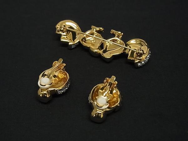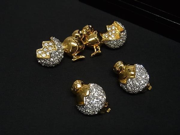 ■新品同様■ SWAROVSKI スワロフスキー ラインストーン チック ひよこ クリップ式 イヤリング ピンブローチ 2点セット FU5458