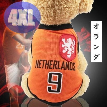 ドッグウェア 春夏 オランダ 4XLサイズ サッカー 代表 ユニフォーム 犬服 大型犬 袖なし 通気性 柔らか 洋服 可愛い