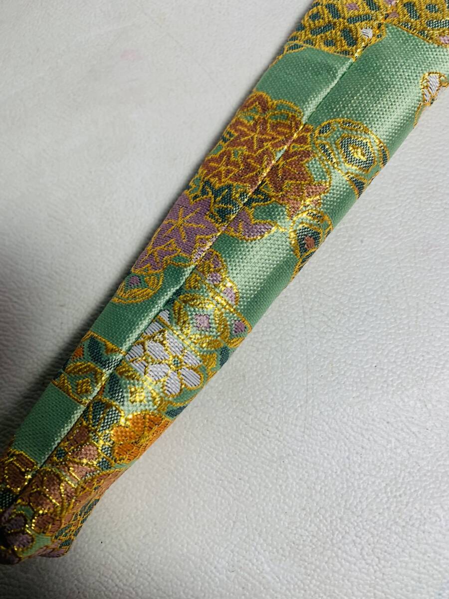 扇子入れ 扇子袋 緑金花文様 r748