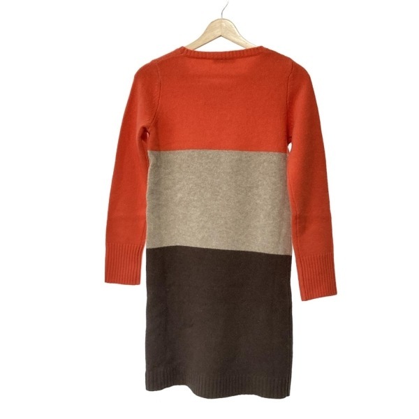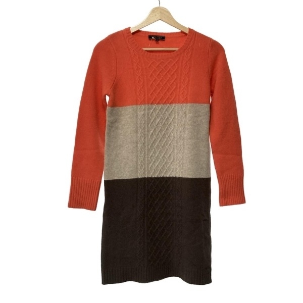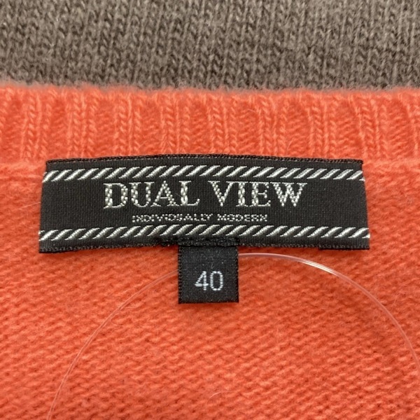 デュアルヴュー DUAL VIEW サイズ40 M - オレンジ×グレーベージュ×ダークブラウン レディース クルーネック/長袖/ひざ丈/ニット