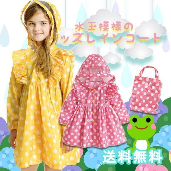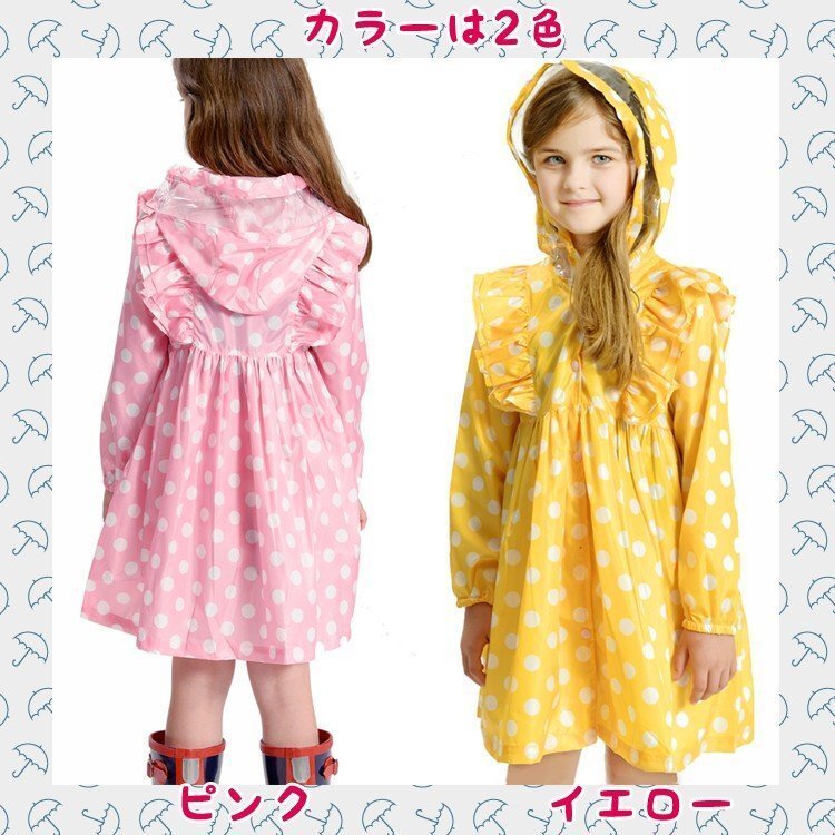 ( 水玉 キッズ 子供 レインコート 収納バッグ レインポンチョ キッズ アウトドア 自転車 通学 レジャー レインウェア OUTDOOR 水玉 ドット フリフリ 子供 梅雨 台風 RAIN COAT 合羽 カッパ 雨具 レインコート 集中豪雨 豪雨 )