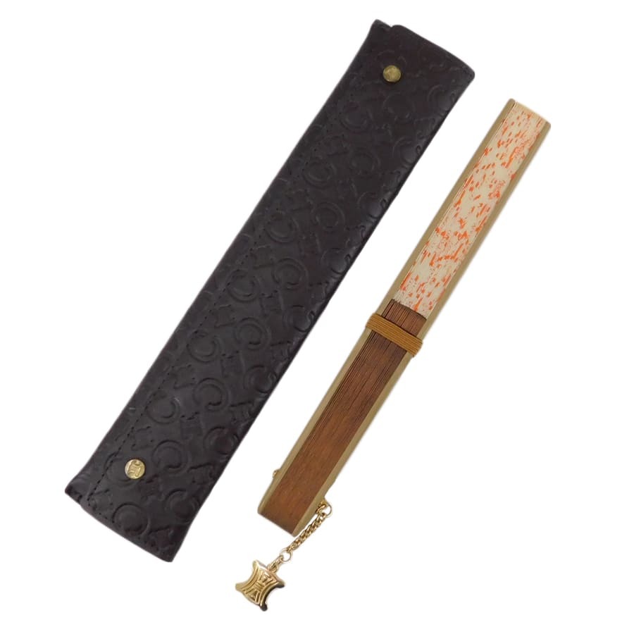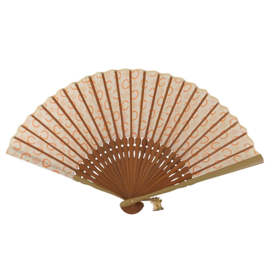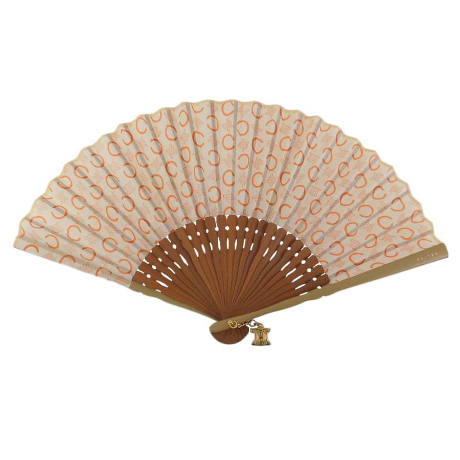 1円■セリーヌ/扇子/オレンジ×ホワイト系/マカダム/チャーム×ケース付き/レディース/CELINE ■E.Bls.pS-17[中古]