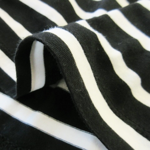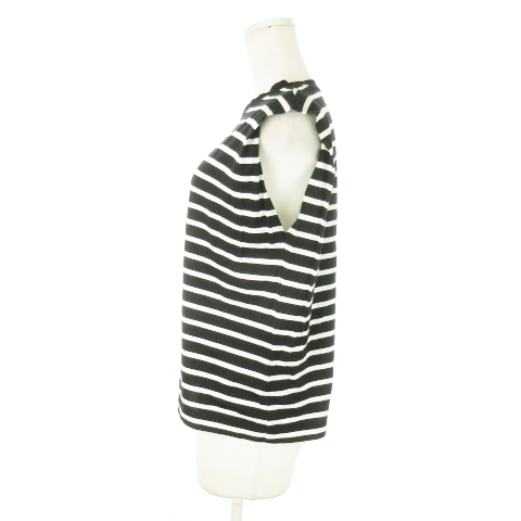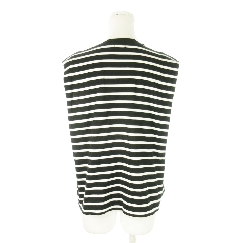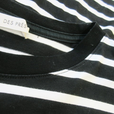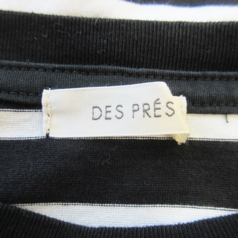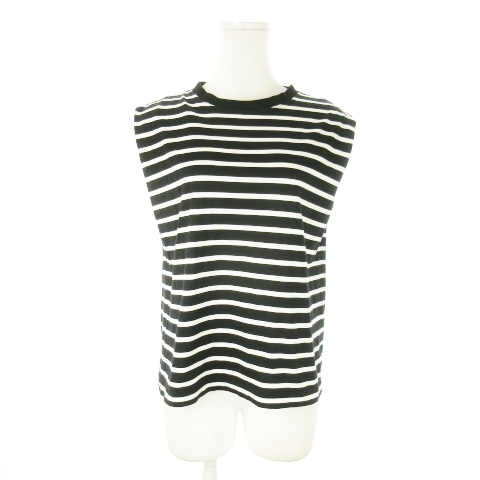 デプレ DES PRES トゥモローランド Tシャツ カットソー クルーネック ノースリーブ コットン ストレッチ ボーダー 総柄 S 黒 ブラック