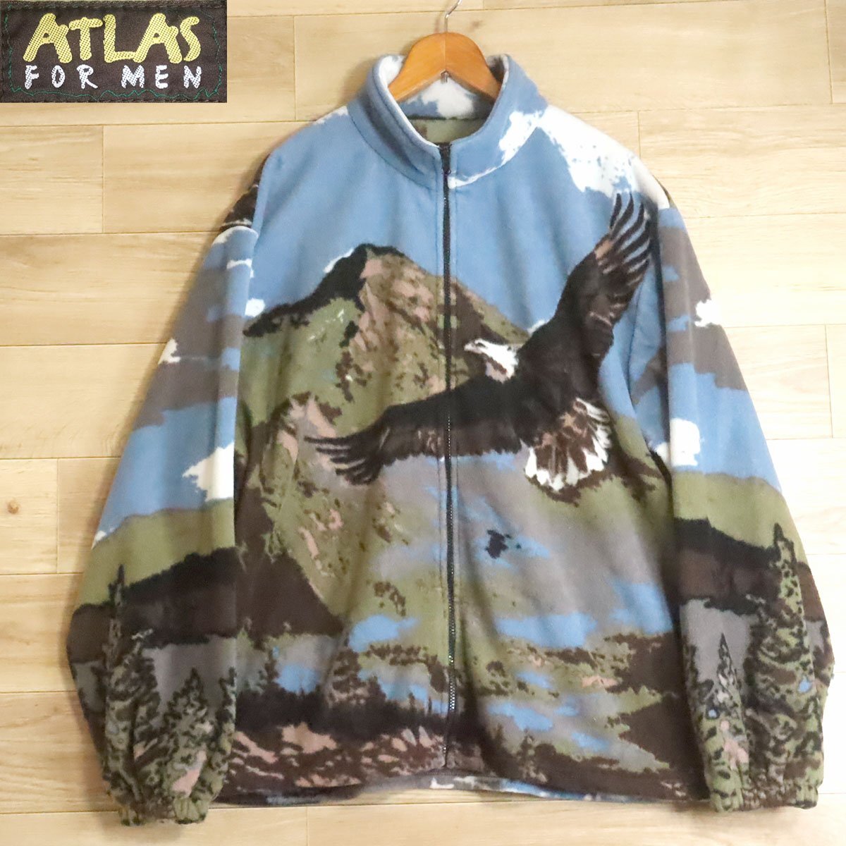M9K/S5.23-1 ATLAS FOR MEN  総柄 鷹 イーグル 鷲 ホーク フリースジャケット ジップアップジャケット ブルゾン XXL