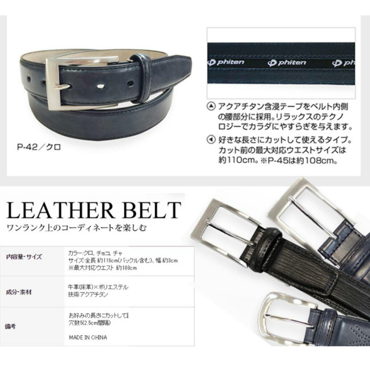 ファイテン×キタガワ LEATHER BELT P-42 ブラック 【IR】