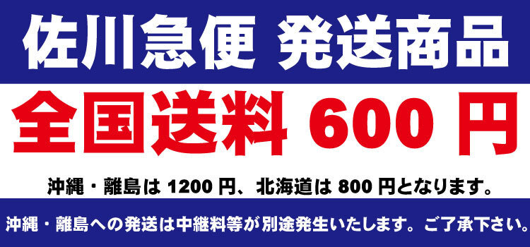 ・発送日から営業所止め支店到着までの目安は3日~5日となります。※製品は千葉県から発送いたします。 天候や配送の混雑状況によって、到着日が遅くなる場合があります。予めご了承ください。 日時指定は受け付けておりません。 ・沖縄・離島への発送は地域によってご希望の営業所までお届けできない場合がございます。 該当のエリアにお住いの方は事前に質問欄よりご確認ください。 ・送料は送料無料商品を除き、ご注文後に反映となります。 地域により送料が異なりますので、下記配送料金表をご確認下さい。 送料無料商品につきましては佐川急便またはクリックポストでの発送となります。 |