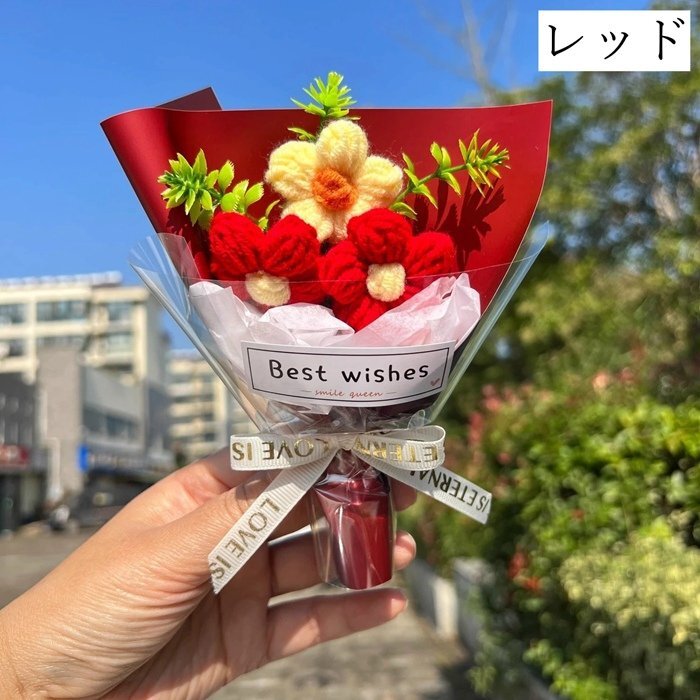 ニットブーケ 手作り花 ミニサイズ ニットフラワー かぎ針編み ミニブーケ 毛糸 カラフル 可愛い 手つくり 子供 花束 造花 飾り ギフト プレゼント 母の日 記念日 敬老の日 成人式 卒業式 バレンタイン クリスマス お祝い 推し活 結婚記念日 父の日 誕生日 枯れない花 贈り物 七夕 ホワイトデー