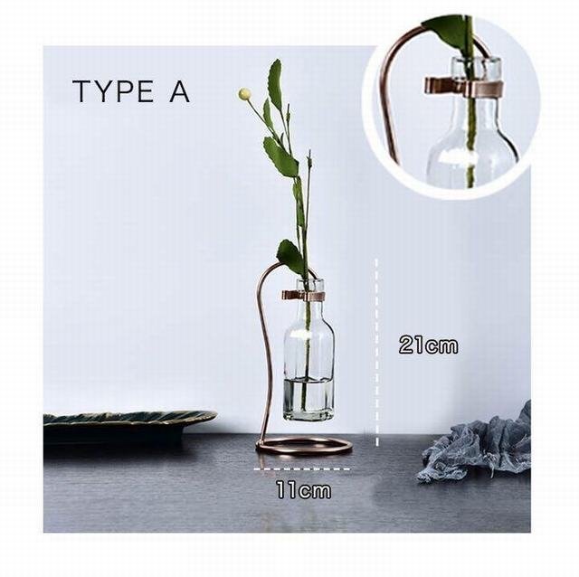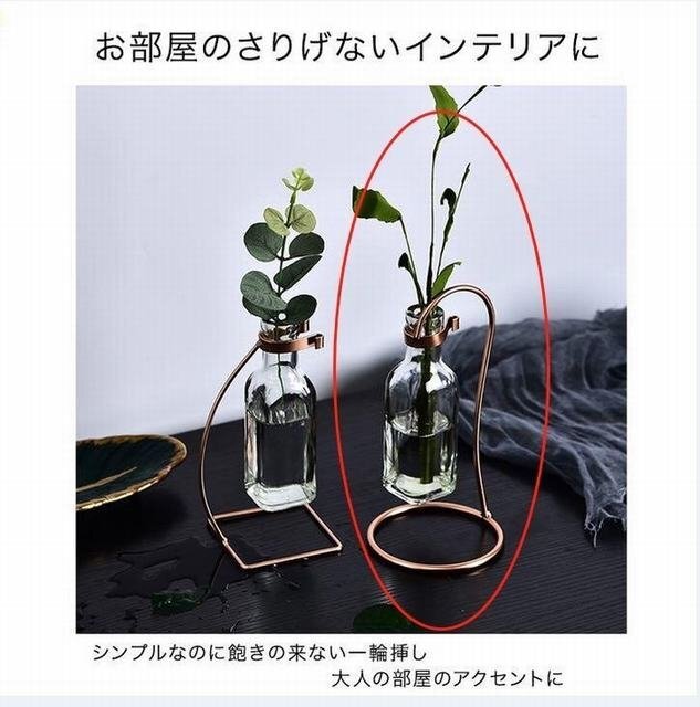 【カラー】ピンクゴールド 【サイズ】写真をご参照ください 【素材】鉄、ガラス シンプルながらもオシャレなデザインでお部屋にも映えてくれるフラワースタンドです。 アクセントにもなってくれること間違いなしシンプルな一輪挿しです