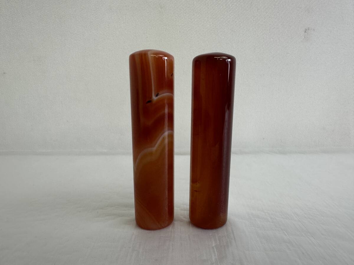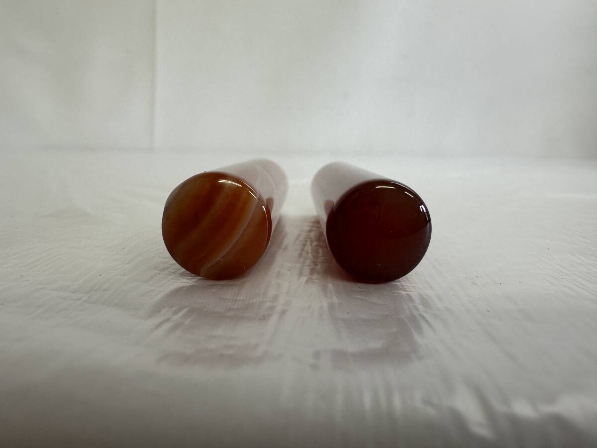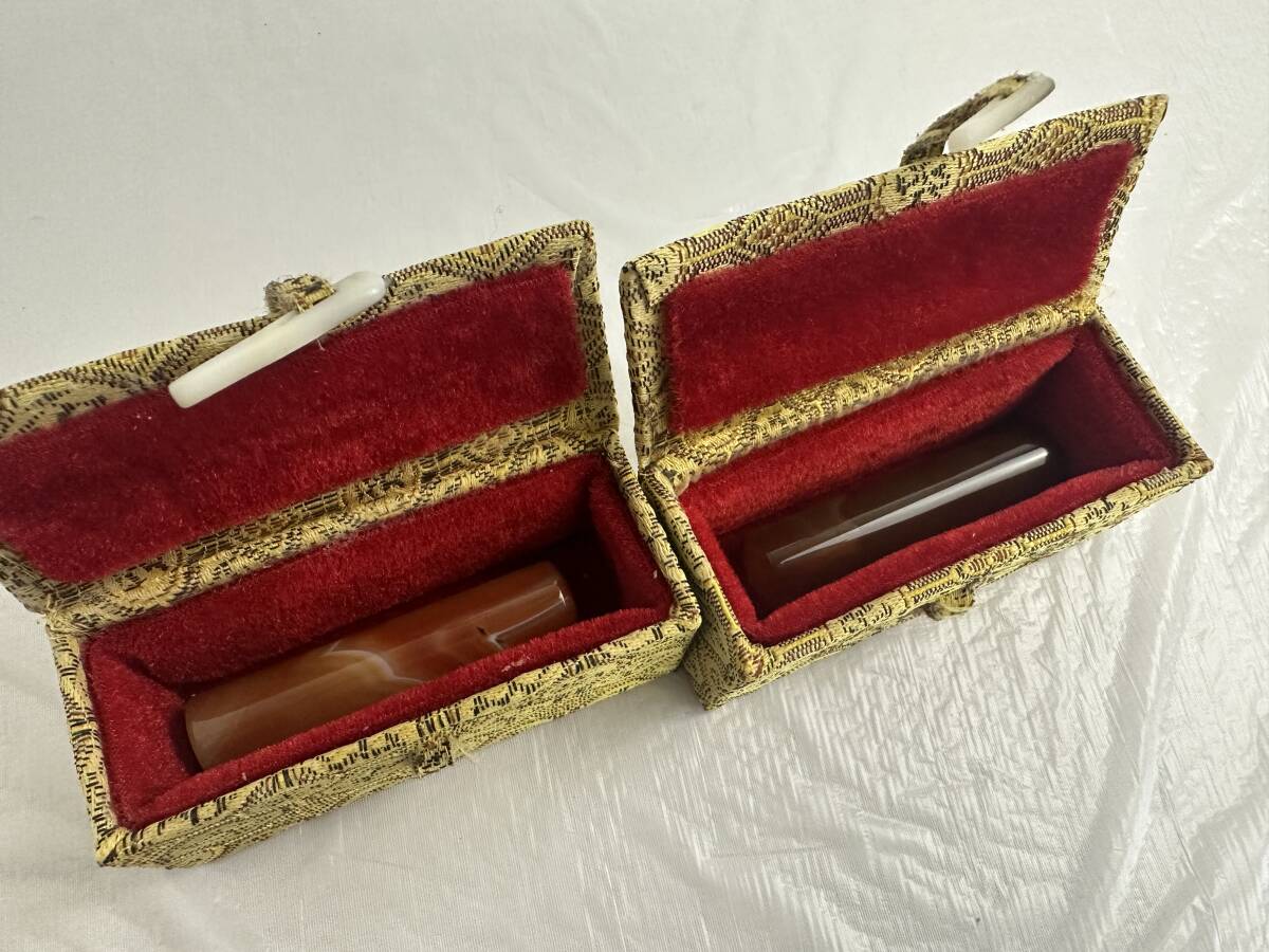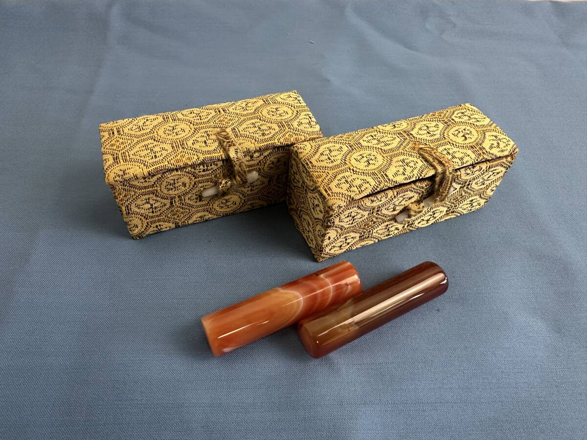 | 印材 メノウ 瑪瑙 印鑑 判子 石材 印石 彫刻 天然石 2本セット 箱付き アンティーク |