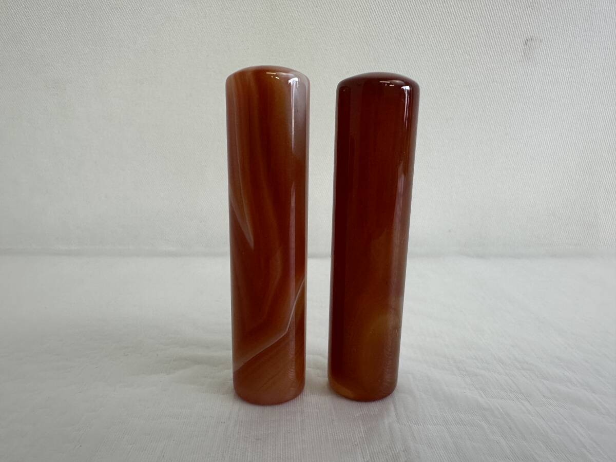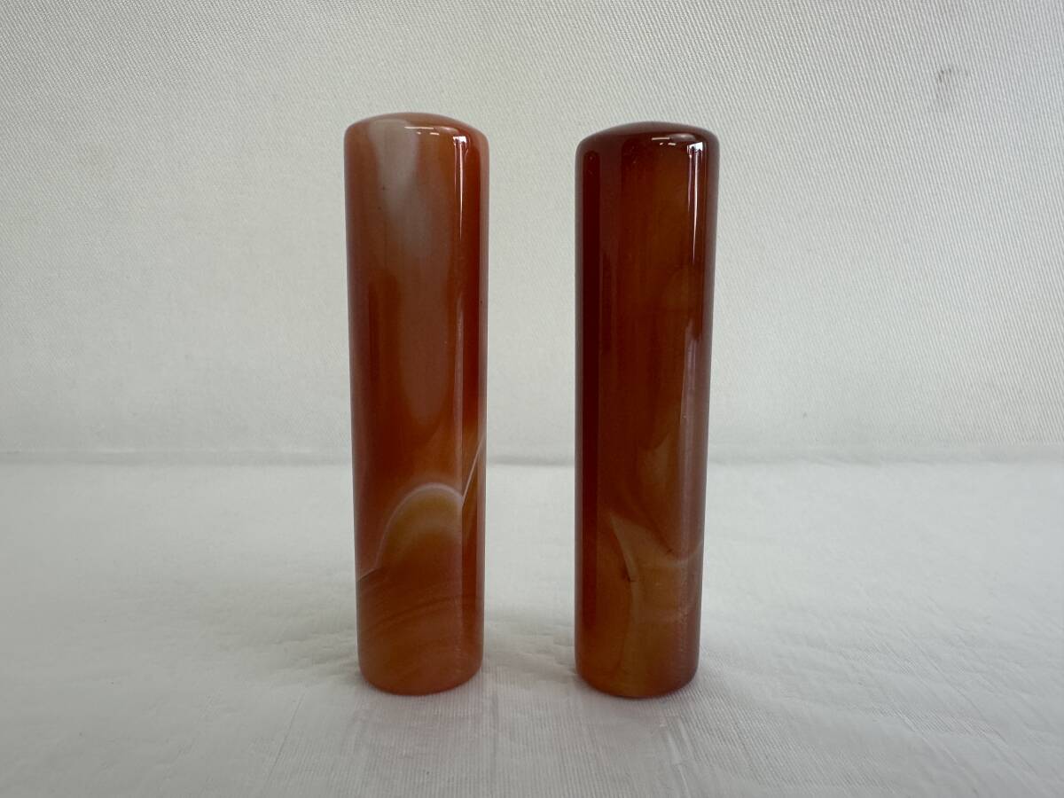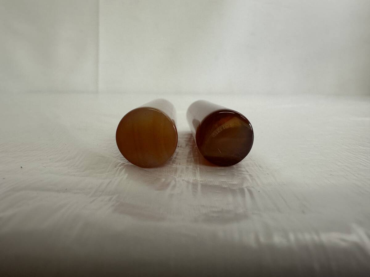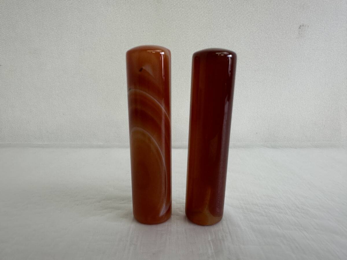 | 印材 メノウ 瑪瑙 印鑑 判子 石材 印石 彫刻 天然石 2本セット 箱付き アンティーク |