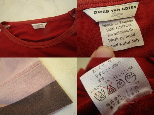 『送料レターパック対応可能   2000年代初頭   DRIES VAN NOTEN   長袖ラグランTシャツ   L   レッドブラウン、薄ピンク、ブラウン系』