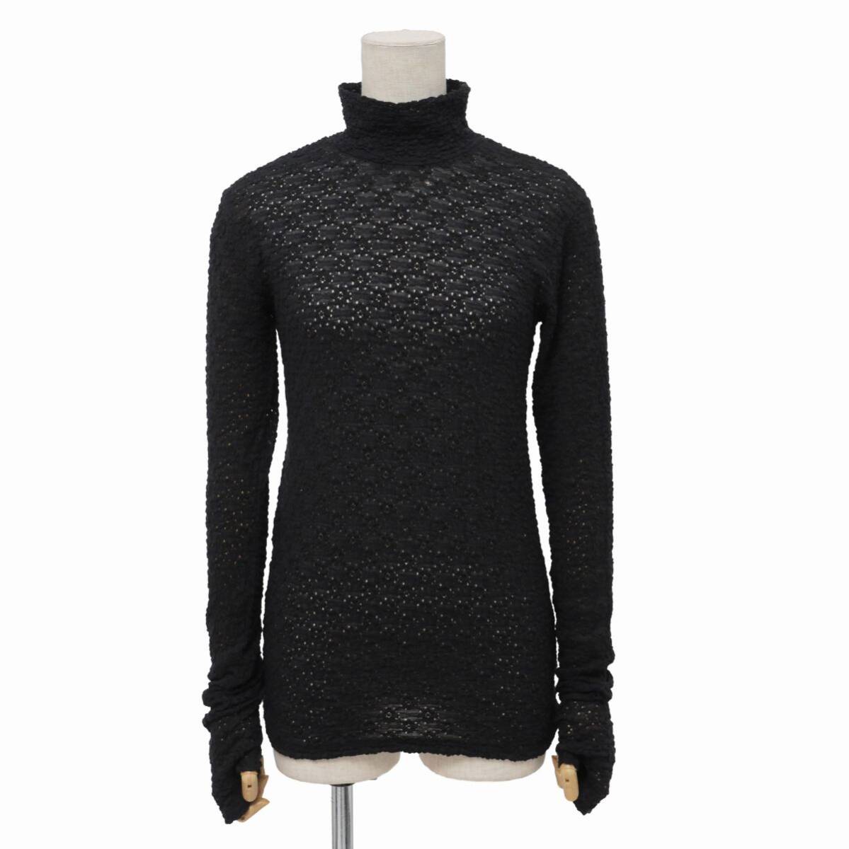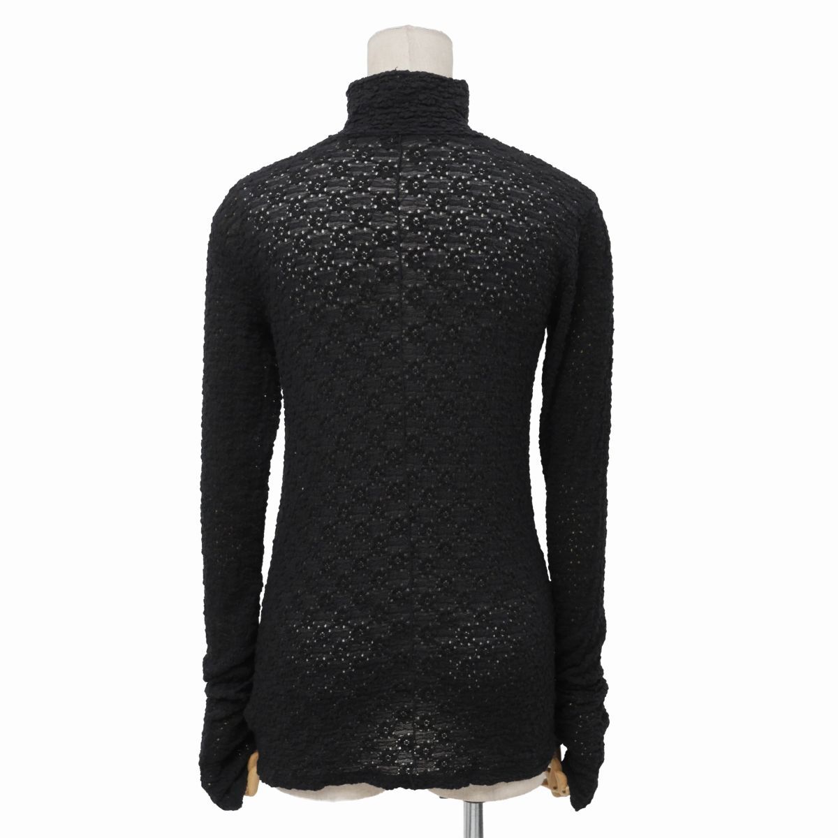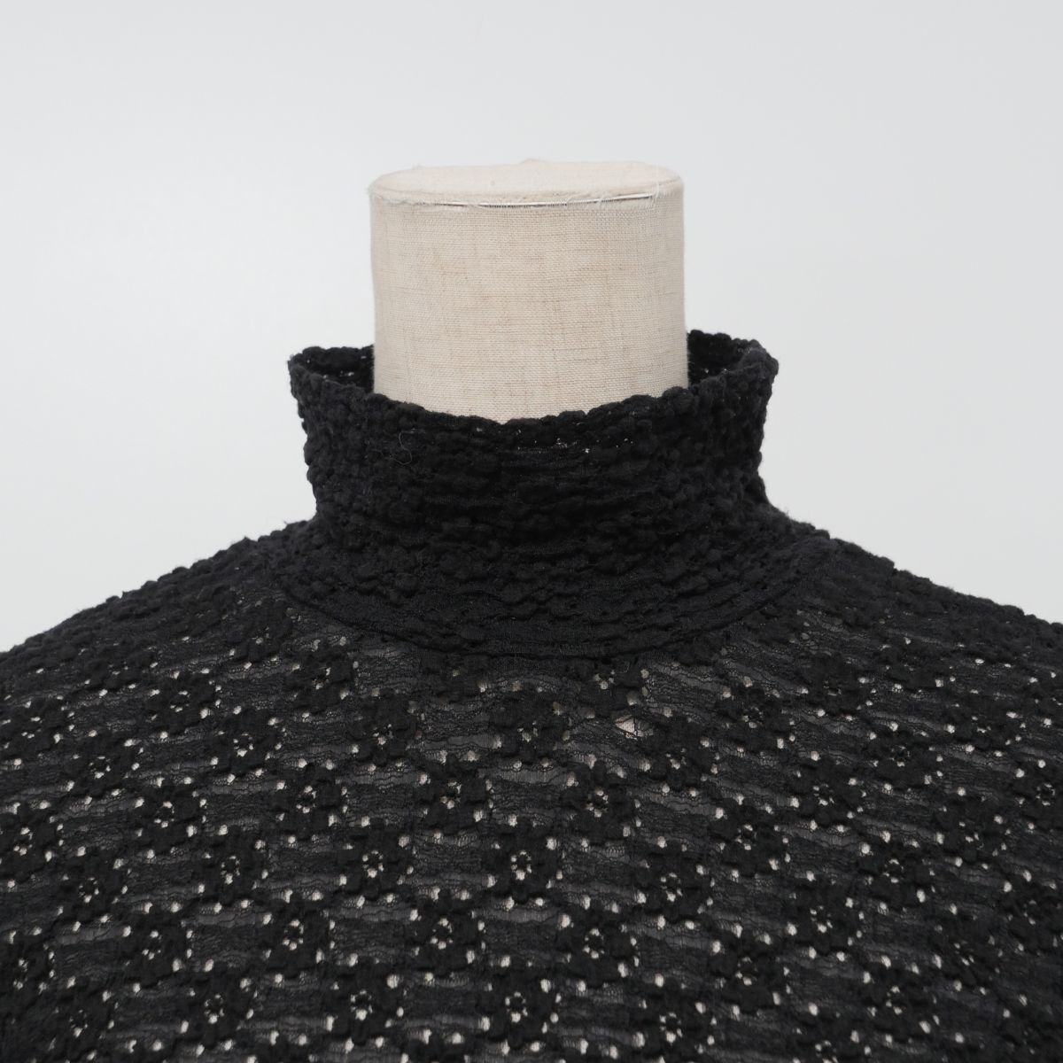 | TJ1769◇メゾンスペシャル MAISON SPECIAL フラワージャガードトップ ストレッチ ハイネック ハンドカバー カットソー サイズF ブラック系 | |||