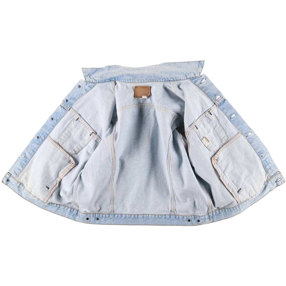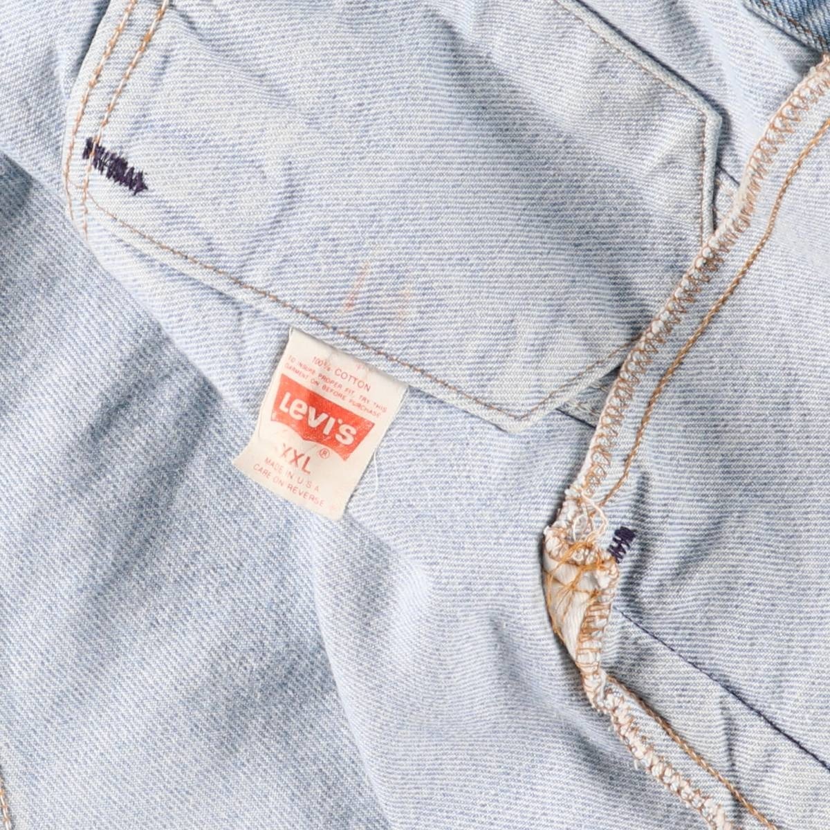 | 表記サイズ: XXL 着丈: 58cm 身幅: 61cm 肩幅: 54cm 袖丈: 63.5cm ![]() | ![]() ランク:C USEDデニムですので使用感、擦れ、色落ちなどございますが、まだまだご愛用していただけます。 古着という事をご理解の上ご注文よろしくお願いします。 【状態追記】 ●全体的に色褪せあり ●前、左右襟・胸・腹部・裾・左右袖先に汚れ ●前、左右袖先に擦れ ●後、襟・裾・左腕・左右袖先に汚れ ●後、左右袖先に擦れ ●内側、襟全体・裾全体・左右袖先全体に汚れ ●前内側全体的に汚れあり |