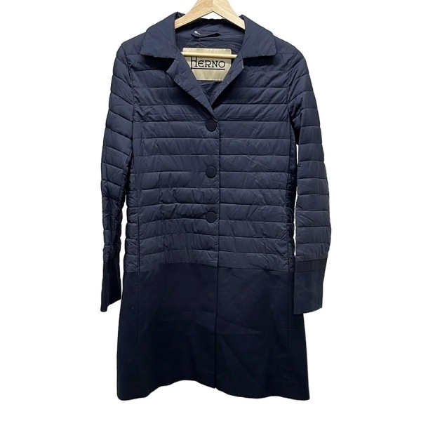 ヘルノ HERNO サイズ42 M - ネイビー×ダークネイビー レディース 長袖/HERNO IN-TECH(ヘルノ インテック)/中綿/秋/冬 美品 コート