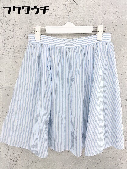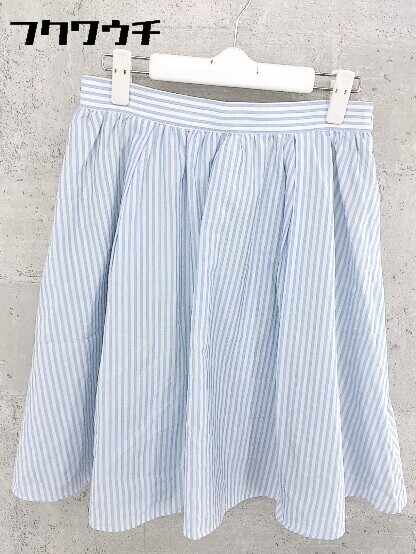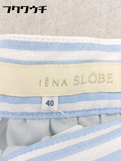 ◇ IENA SLOBE イエナスローブ サイドジップ ストライプ 膝丈 ギャザー スカート サイズ40 ブルー ホワイト レディース