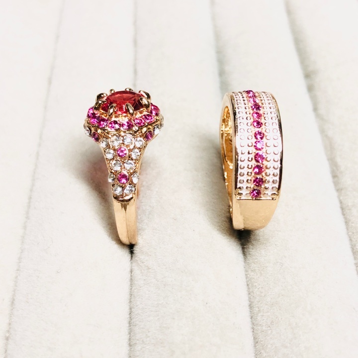 【YB257-5】 指輪 キラキラ 赤 ルビー ダイヤモンド パーティー ギフト ヨーロッパ 米国 ゴールド レディース