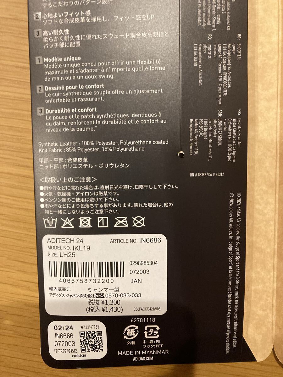 耐久性とフィット感に優れたADITECHゴルフグローブ、3セット。