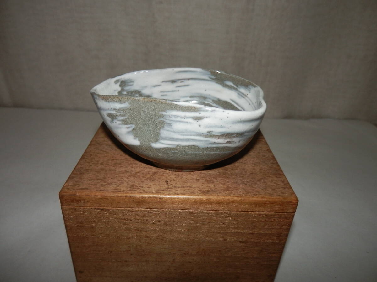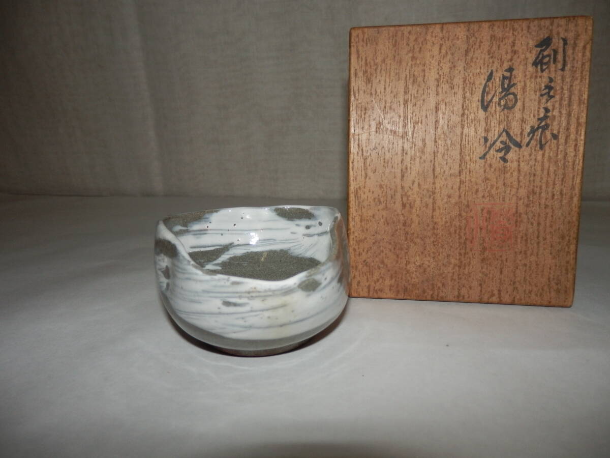 「中古品・煎茶道具」 平安陶工の六世の華中亭 道八さんの湯冷です。刷毛目です。縦約10cm 横7.8cm 高さ約4.6cm 底に「道八」の印有。 桐共箱「ヤケ、シミ等有」。 どうぞ宜しく。