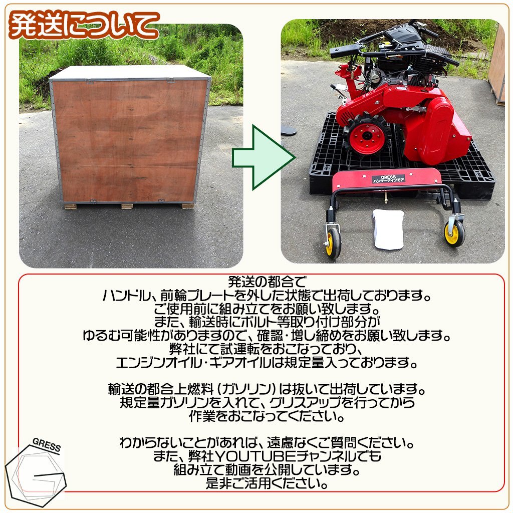 商品説明の項目は【1】~【6】まであります。 必ず入札前にお読みいただき、ご了承の上ご入札くださいますようお願い致します。 ※商品画像2枚目のように使用に支障のないへこみや塗装ムラ、キズ等あるものになります。 入札いただいた時点で了承したものといたします。 落札価格とは別に送料がかかります!必ず「【5】配送方法・送料」をご確認ください。 【まとめて取引をご利用の場合】 部品を同時に落札いただいた場合、配送方法は必ず以下どちらかをお選びください。 1.お住まいが離島でない場合⇒電動RT/FM/SM 西濃支店止 手動RT 西濃支店止/法人(会社) 2.お住まいが離島の場合⇒電動ルーフテント/フレールモア/ショベルモア 各都道府県離島の西濃運輸営業所止め・港止め ※他の配送方法を選ばれた場合は当店にて送料を再計算することがあります。 ※一部まとめて取引ができない商品がございます。 ヤフオクで落札いただいた場合は、初期不良および保証期間における対応は部品交換のみとなります。説明書記載の初期不良対応は不可となりますのであらかじめご了承ください。 通常の初期不良対応をご希望の場合はYahoo!ショッピングにてお買い求めくださいますようお願い致します。 Yahoo!ショッピングはこちらからご覧ください 配送方法は西濃運輸営業所止めのみとなります。 法人および自宅(個人宛)配送不可です。送料は配送方法・送料をご確認ください。 1日の出荷台数に限りがあるため、当店からの発送に数日かかる場合がございます。 荷下ろしにはフォークリフトやクレーンが必要となります。 ※西濃運輸営業所でお引取りの際、フォークリフト等で車に載せてもらえます。 【ご自宅や会社にフォークリフトがない場合】 西濃運輸営業所にてお引き取り後、 軽トラなどでお持ち帰りになる場合は木箱を開いて荷台にて組み立て可能です。 組み立て後、ブリッジやラダーを使用してモアをおろすことができます。 エンジンをかけなくてもおろせます。走行クラッチOFFの状態であればモアが動きます。 エンジンをかける場合は必ずガソリンを入れてください。また挙動には注意してください。 替刃など部品の販売も行っており長くご使用いただけます。 ハンマーナイフモアの部品はこちら ハンマーナイフモアとは、高速回転する刃で 除草しながら刈り取った草を破砕する機械のことです。 自走式ではクラス最大420cc/15馬力のエンジンを搭載しております! サイドクラッチのないシンプルなモデルです。 輸送の都合でハンドル、前輪プレートを外した状態で出荷しております。 ご使用前に組み立てをお願い致します。 また輸送時にボルト類が緩みますので必ず増し締めをお願い致します。 弊社にて試運転しており、エンジンオイル、ギアオイルは規定量入っておりますが 輸送の都合上、ガソリンを抜いて出荷しております。 ご使用前にガソリンを規定量入れて、グリスアップを行ってからご使用ください。 ◎カラー:レッド ◎本体サイズ(cm):幅約74×奥行約177(最大※)/173(最小※)×高さ約110(最大※)/94(最小※) ※ハンドルの高さ調整による最大・最小 ※ハンドルの上下左右はグリップ下レバーで調整可能です。 ◎刈幅:約60cm ◎刈高:約2-10cm ◎刃:Y字刃32枚(2枚1組) ◎重量:約125kg ◎走行速度:3-3.5km/h ※キアオイル、エンジンオイルを入れ試運転を弊社にて行っておりますので 簡易な組み立て各所増し締めをしグリスアップを行いレギュラーガソリンを入れれば使用できる状態です。 ◎日本語組立説明書付き。 ◎エンジン:LONCIN G420F(D)(420cc・15馬力) ◎始動方式:セル/リコイルスターター ◎燃料:レギュラーガソリン(6.5L) ※保証内容:本機具の保証期間は商品到着日より1カ月です。 ◎梱包サイズ(cm):幅約105cm、奥行約82cm、高さ約95.5cm、重さ約135kg ※木箱に入れての発送(1個口)となります。 ※荷下ろしには必ずフォークリフトが必要となります。 ※原則として入札取消は受付しておりません。 ※商品の不良につきましては、部品交換での対応となります。 ※商品の特性上、返品不可となります。 |