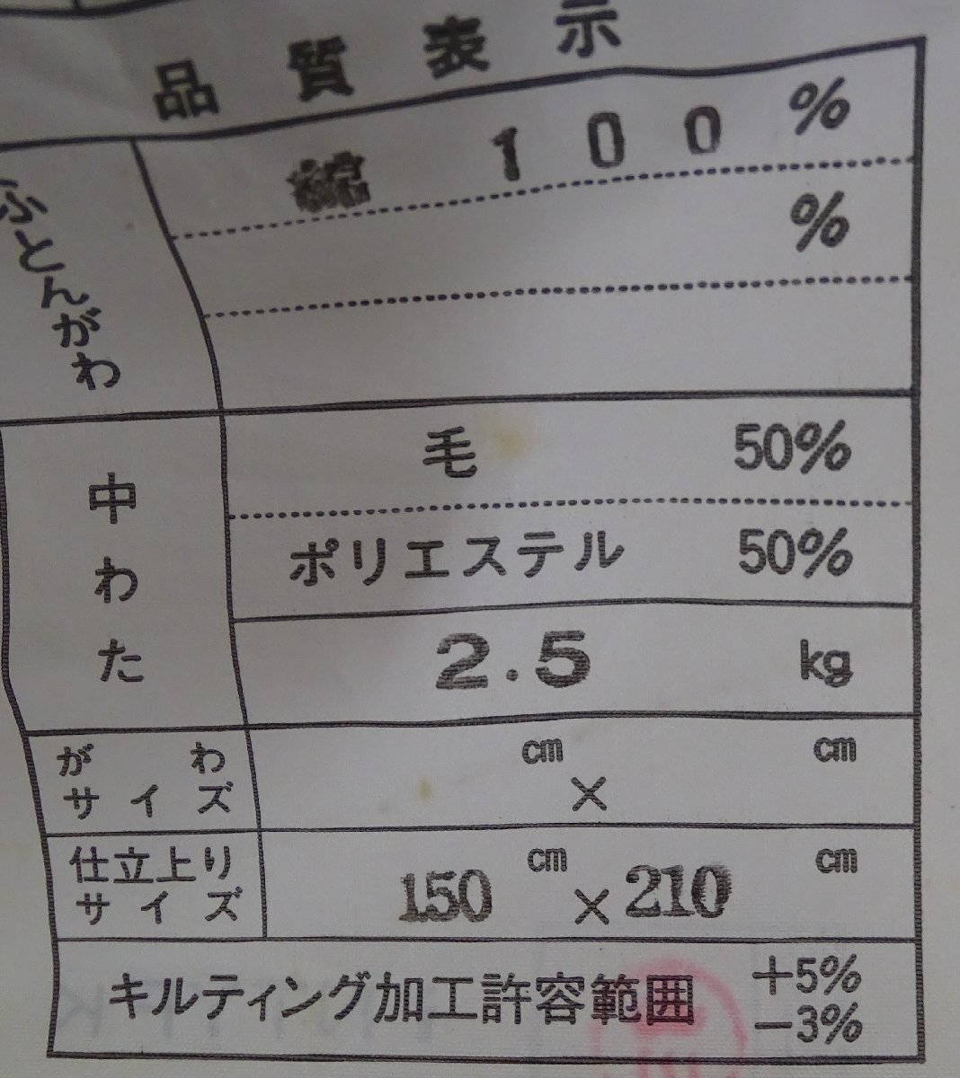 ・品名:QWEQTTふとん・BESTQQUALITT ・日本製・素材:綿100%・毛50%・ポリエステル50%・NO-R6-12-5.8