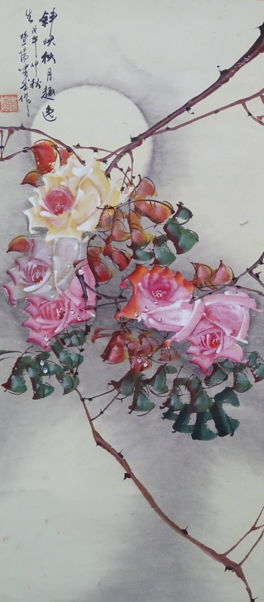 品名:掛軸 源海 作「ばら之図」(日本画)