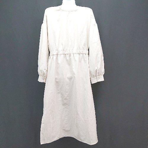 ◇ W CLOSET シフォン ウエストゴム シワになりにくい 長袖 ロング丈 ワンピース サイズF ベージュ レディース E