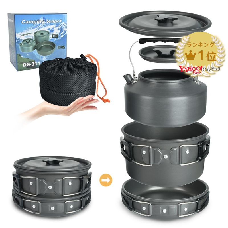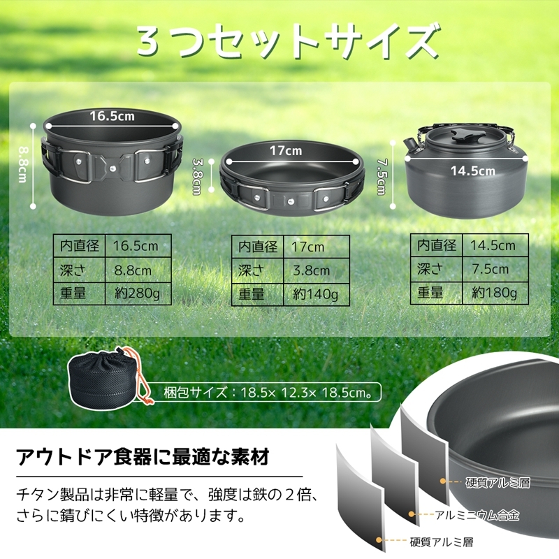 【一位】キャンプ用品 クッカーセット クッカー キャンプ 鍋 ソロキャンプ アルミ鍋 2~3人分用 収納袋付き 食器セット 登山 防災