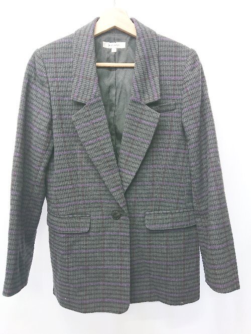 ■ ⊆ MOUSSY マウジー 千鳥格子柄 長袖 ジャケット サイズ1 ブラック パープル レディース E
