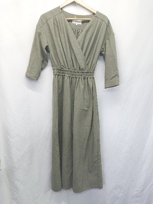 ◇ Θ ABAHOUSE アバハウス カクシュール 七分袖 オールインワン サイズS カーキ レディース E
