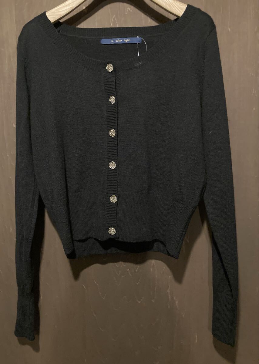 再↓秋冬★an another angelusアンジェラス★人気ローズボタン長袖カーディガン ブラック 新品タグ付き クラシカル フィント 薔薇 バラ