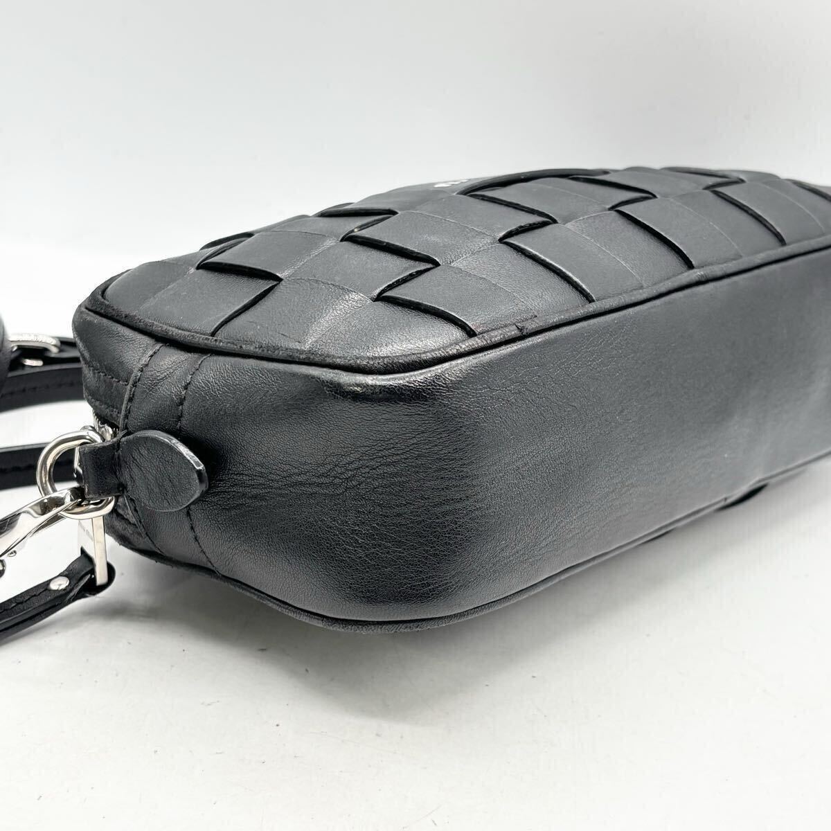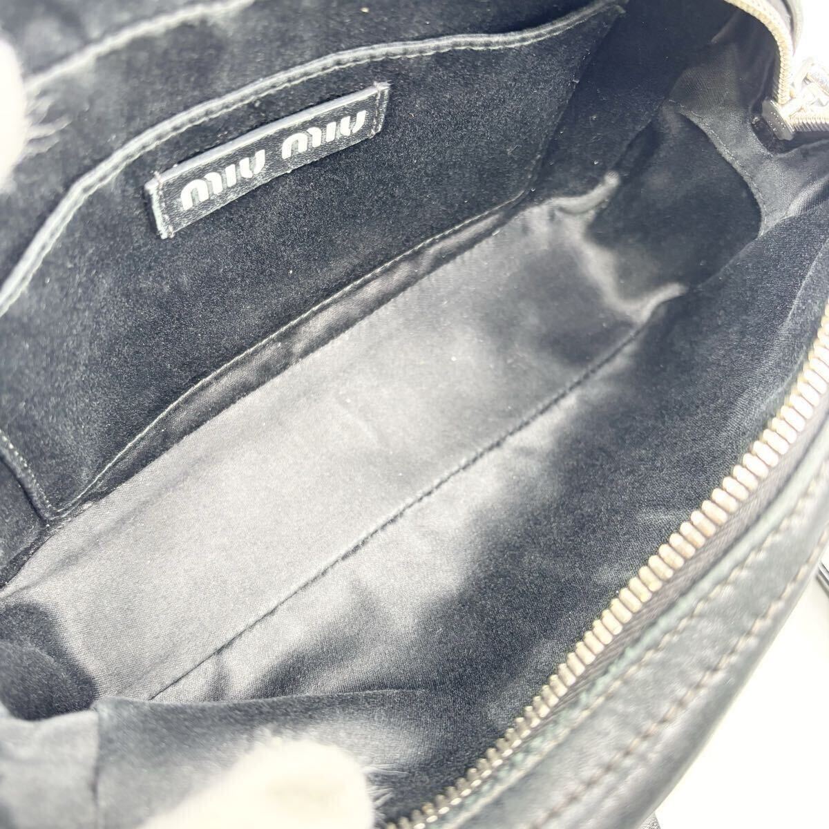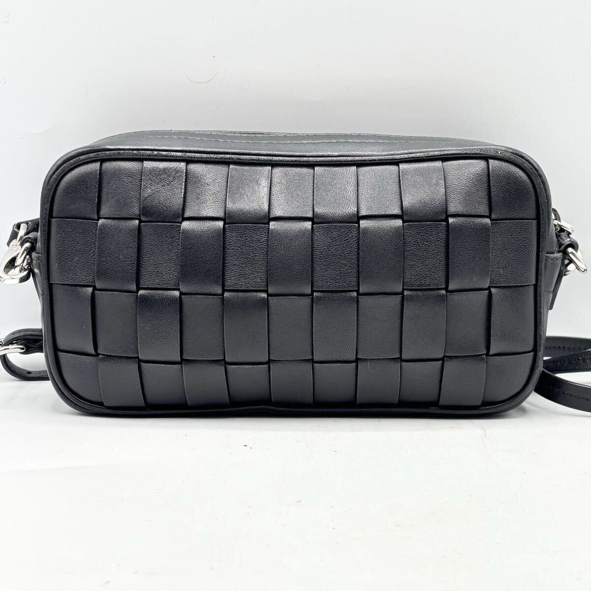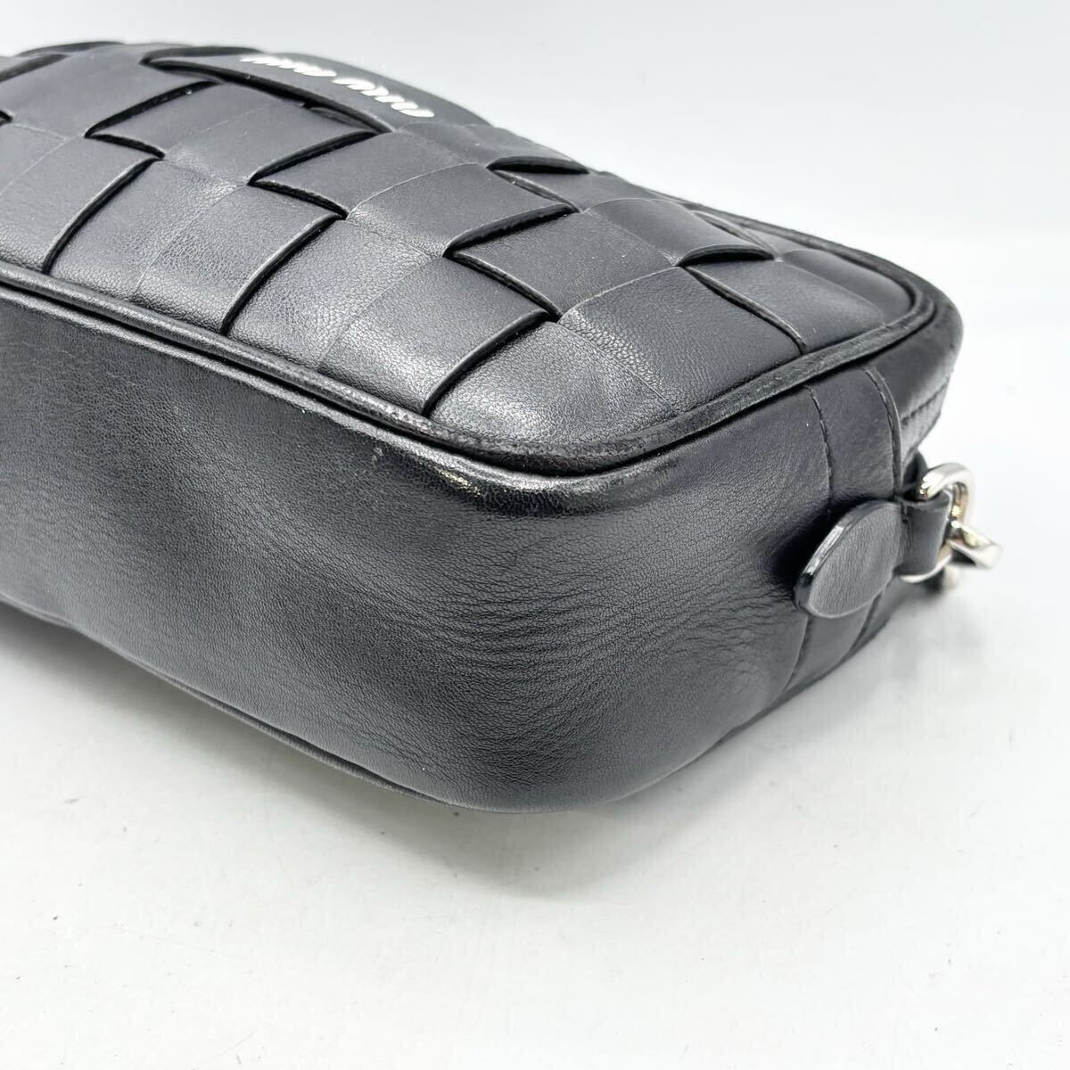 現行モデルのミュウミュウ(miu miu)のクロスボディバッグ、未使用品です。上質な編み込みレザー(イントレチャート)が特徴的で、ブラックにシルバー金具が映えるスタイリッシュなデザイン。財布やスマートフォンなどの必需品が収まるサイズ感で、デイリーユースに最適です。