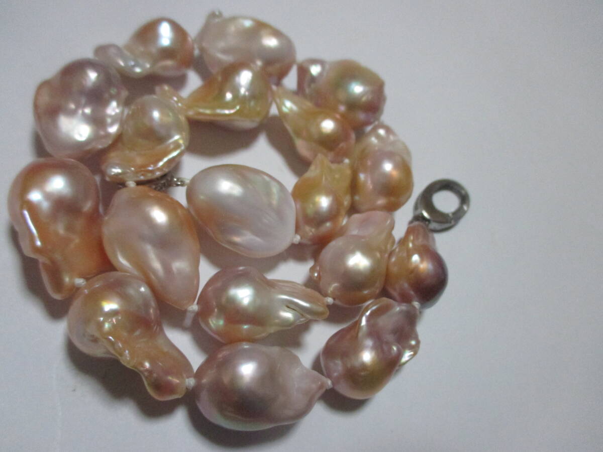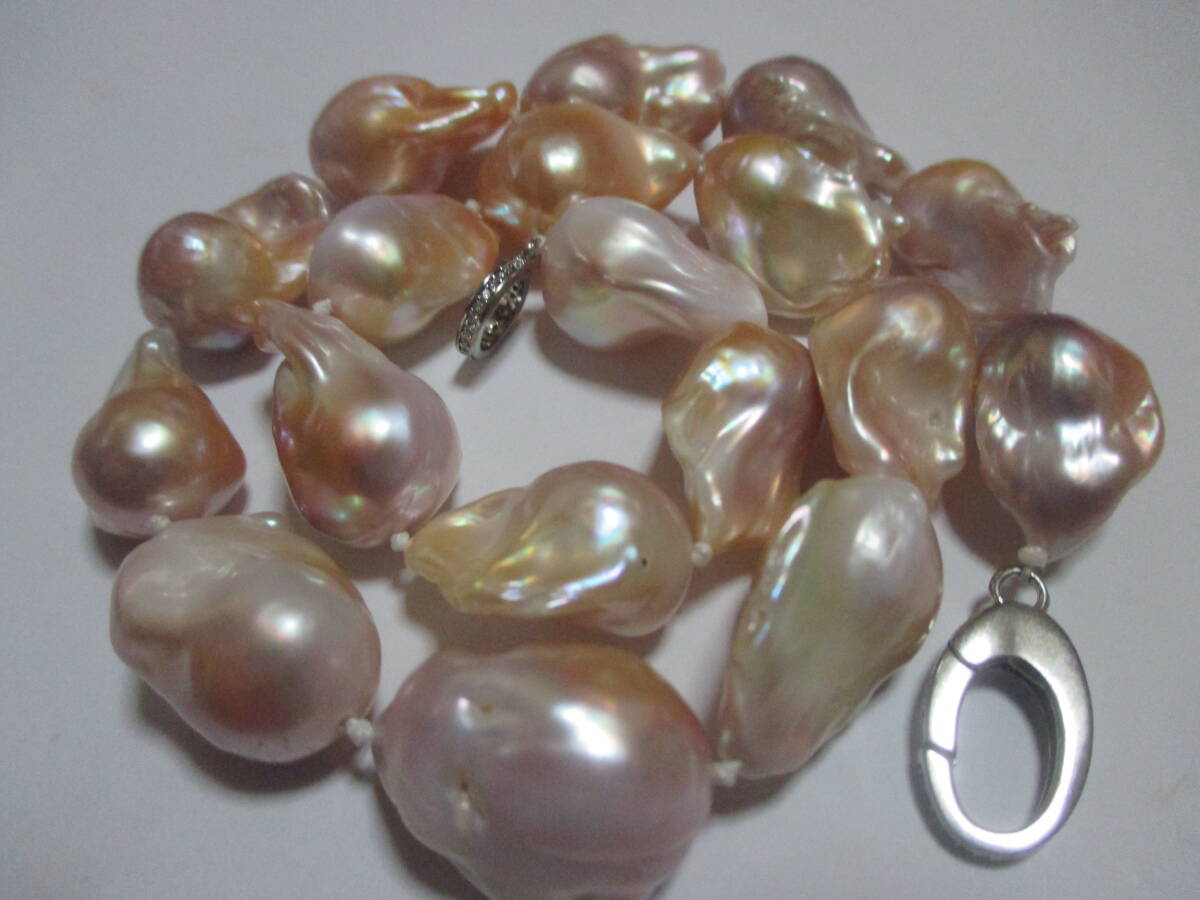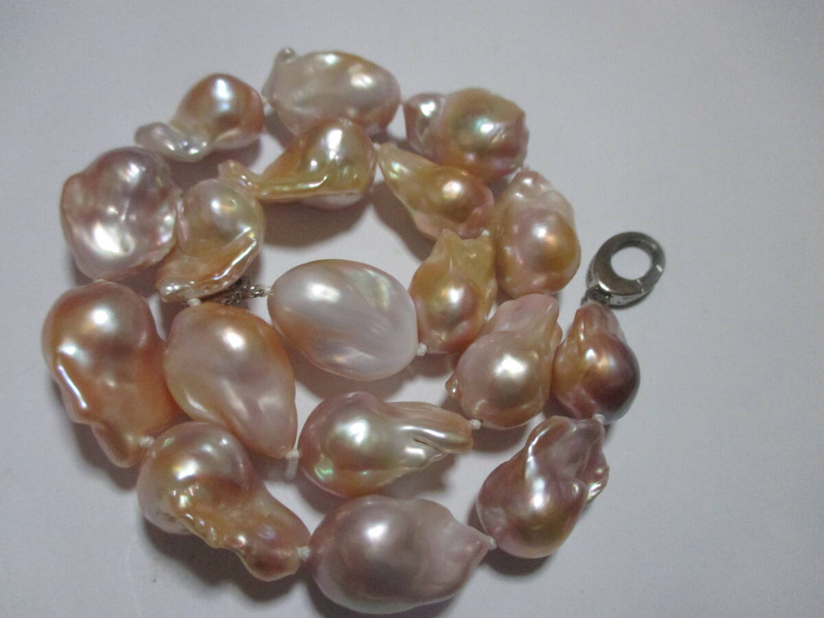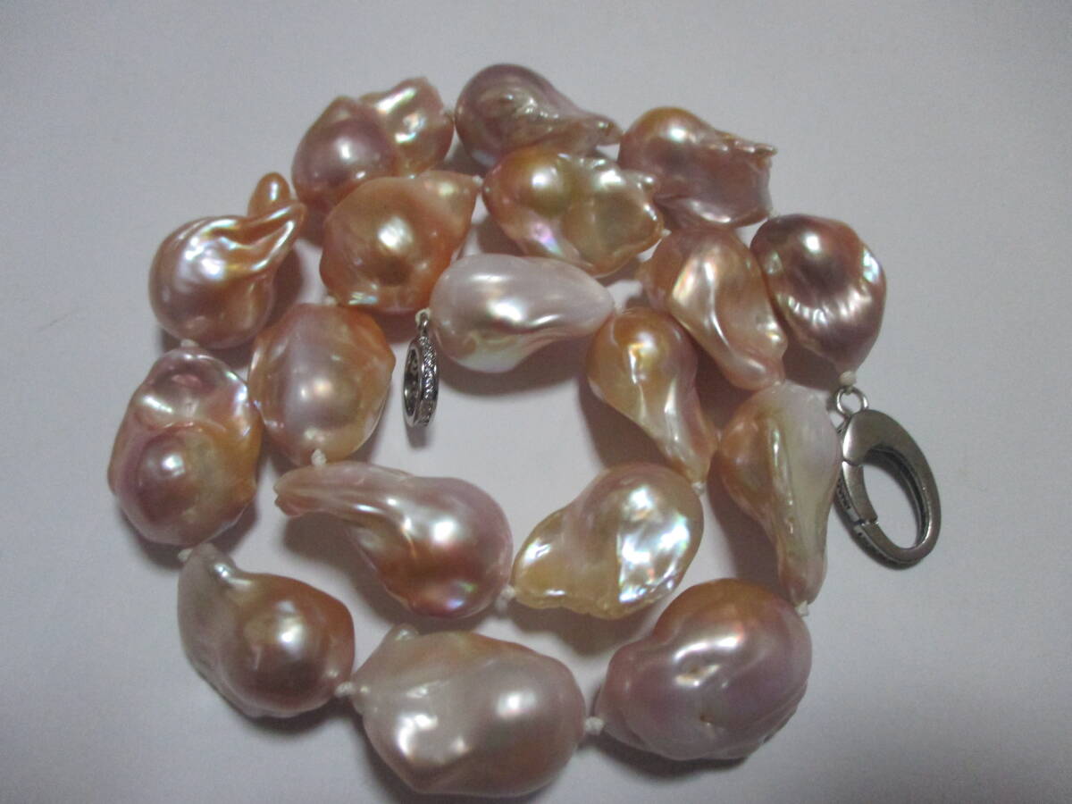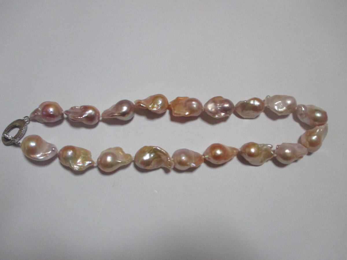別注1のみ安く~★珍美色グレードいい 新品南洋天然最大2,3cmx1,5cmバロックピンク系ネックレスパールネックレス