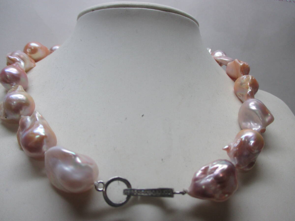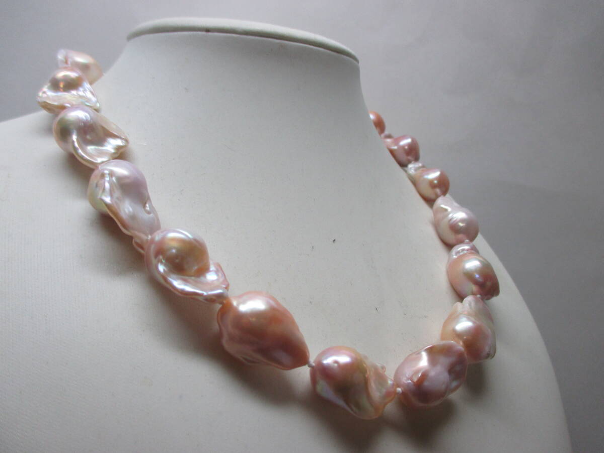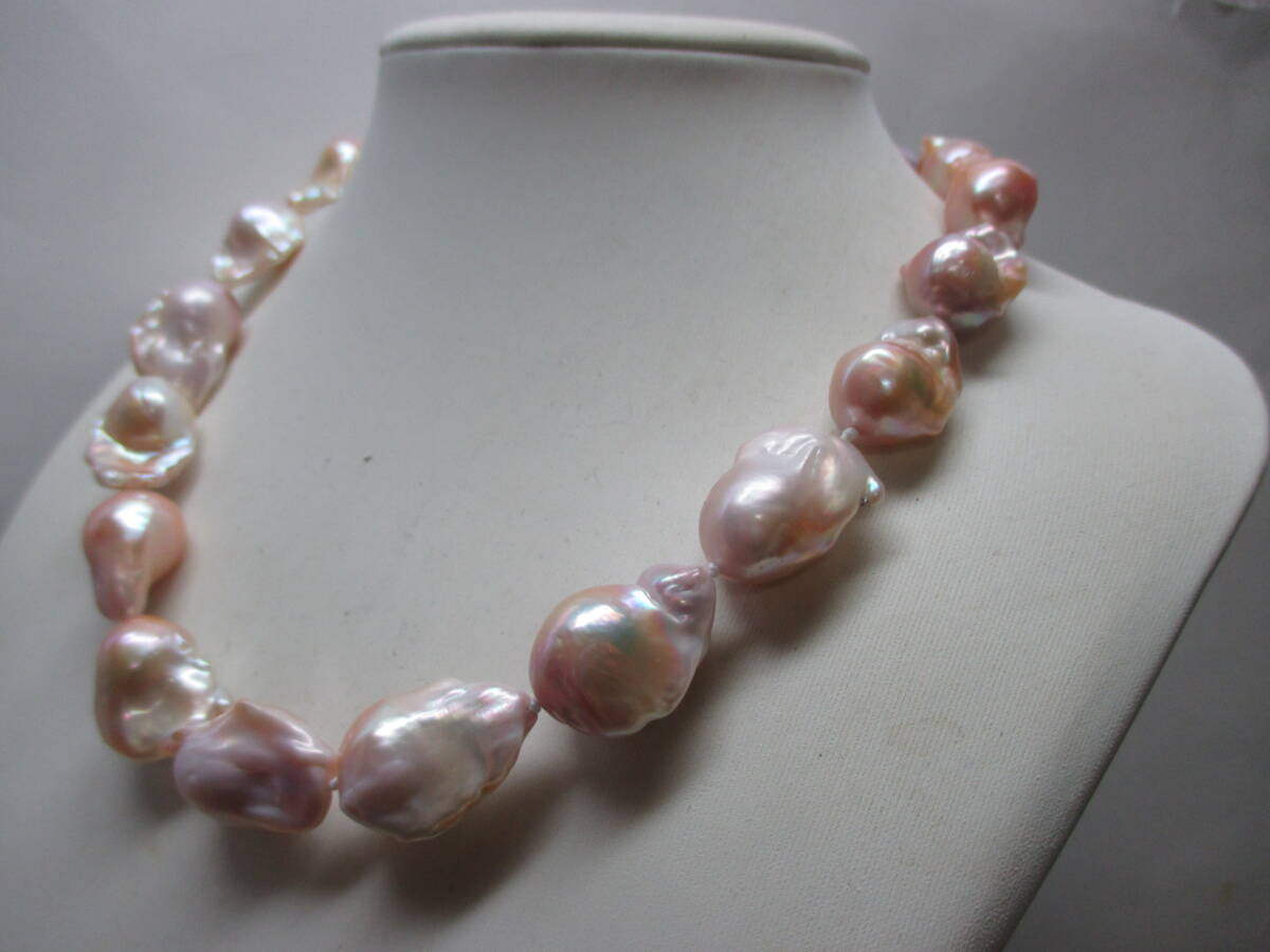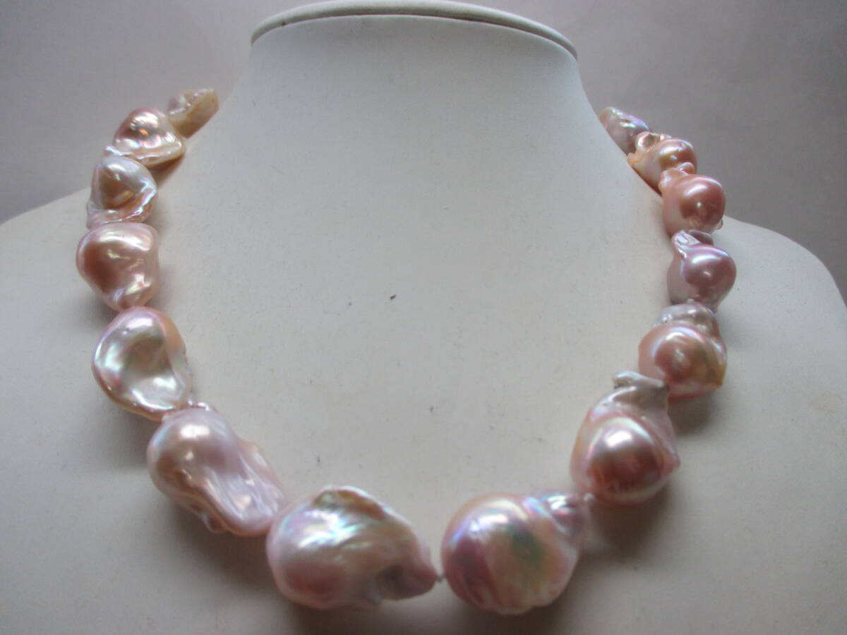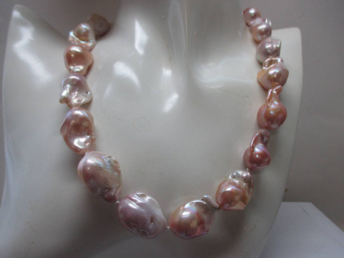 別注1のみ安く~★珍美色グレードいい 新品南洋天然最大2,3cmx1,5cmバロックピンク系ネックレスパールネックレス