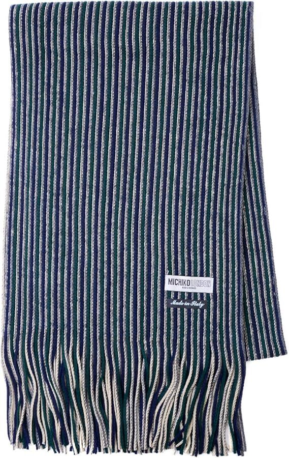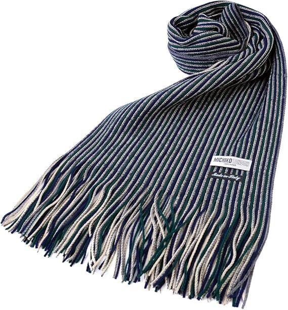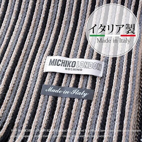 [ミチコロンドン] イタリア製 ブランドマフラー 男女兼用 ラッセル ストライプ ネイビー系
