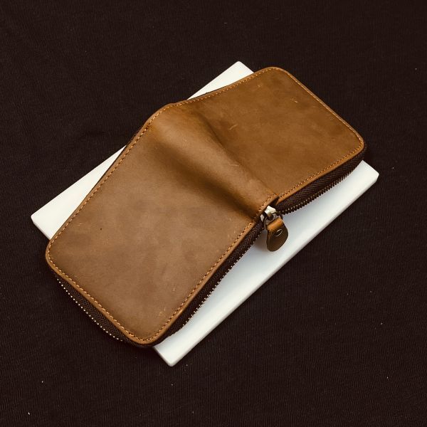 【浅草革具】ヌバックレザー 二つ折り財布 コンパクト財布 メンズ財布 レザー 革財布 本革 牛革 新品未使用 折り財布 ファスナー ブラウン