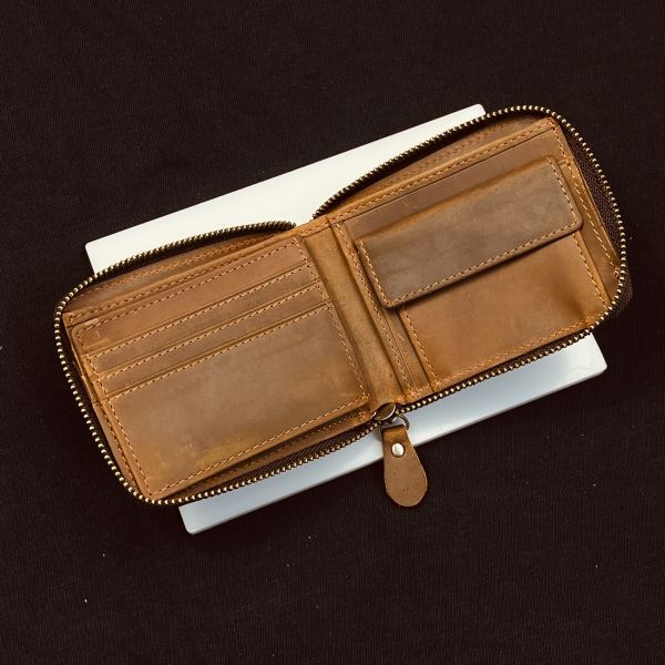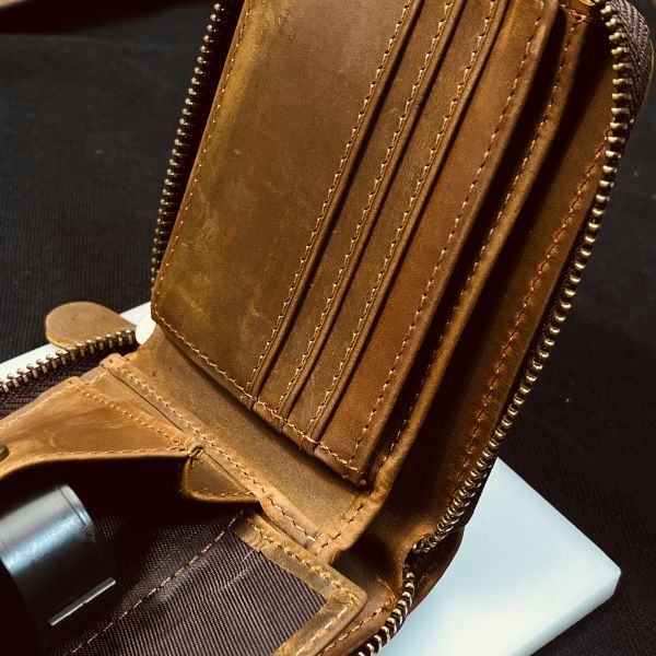 【経年変化を楽しめるマッドな質感のヌバックレザーを使用した二つ折り財布財布】